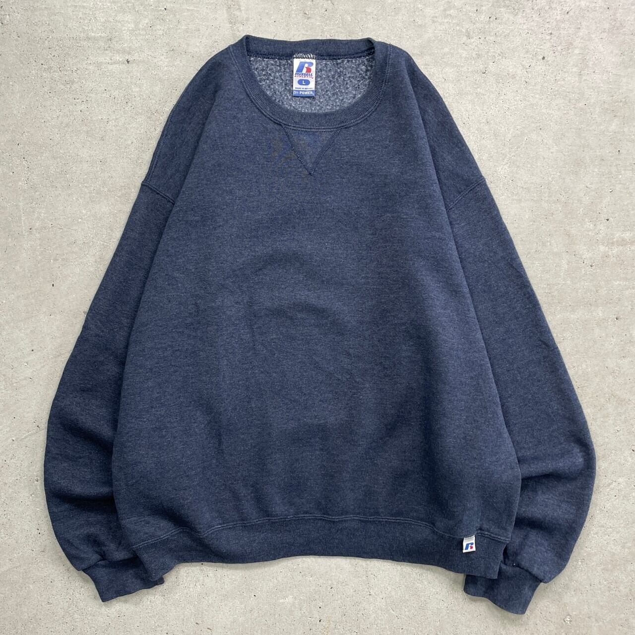 00年代 RUSSELL ATHLETIC ラッセル ブランクスウェットシャツ 無地 メンズL 古着 00s Y2K VINTAGE ヴィンテージ アメカジ トレーナー 前Vガゼット ネイビーグレー 紺色 灰色【スウェット】/グレーSS30