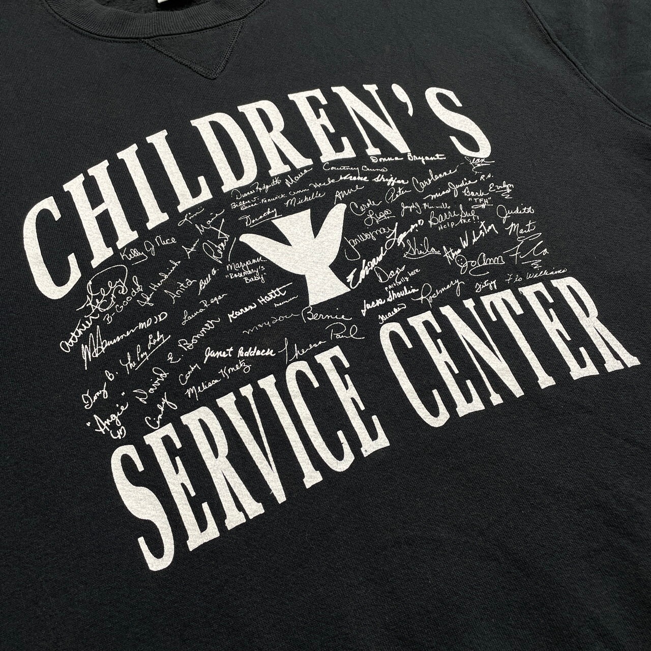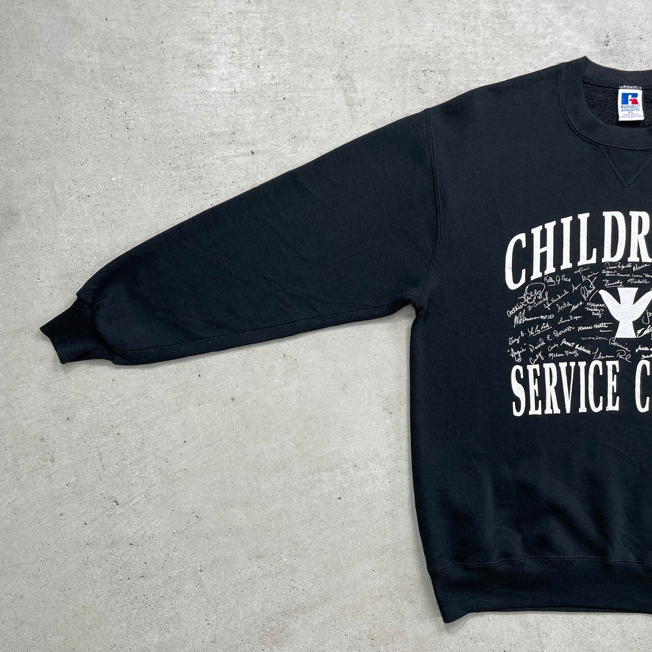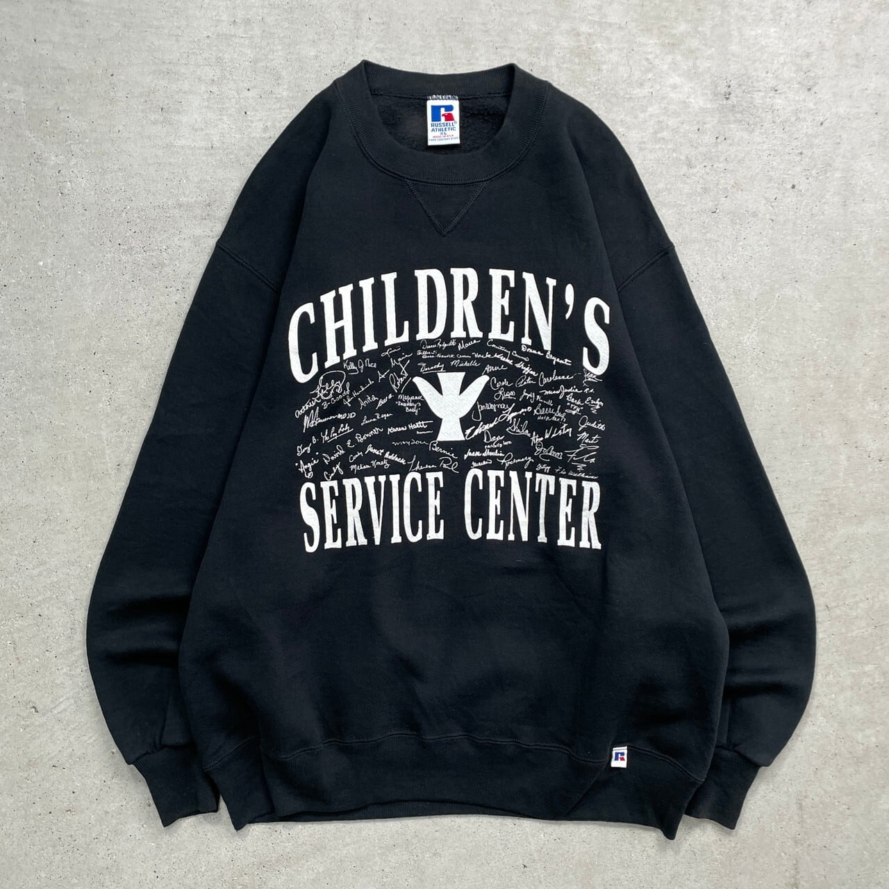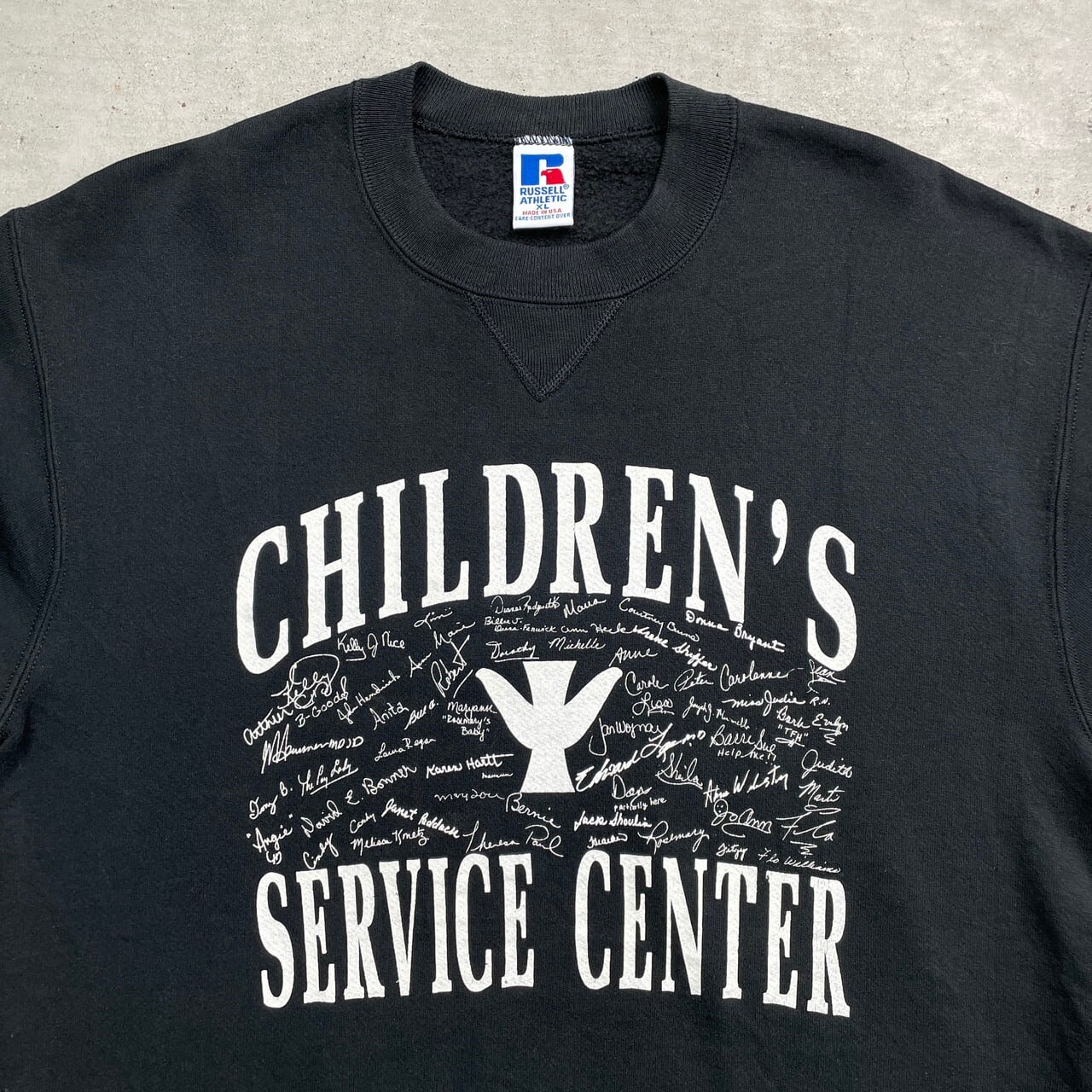 90年代 USA製 RUSSELL ATHLETIC ラッセル スウェットシャツ 企業ロゴプリント メンズXL 古着 90s ヴィンテージ VINTAGE 前Vガゼット アメカジ トレーナー CHILDREN'S SERVICE CENTER 黒 【スウェット】/ブラックSS30