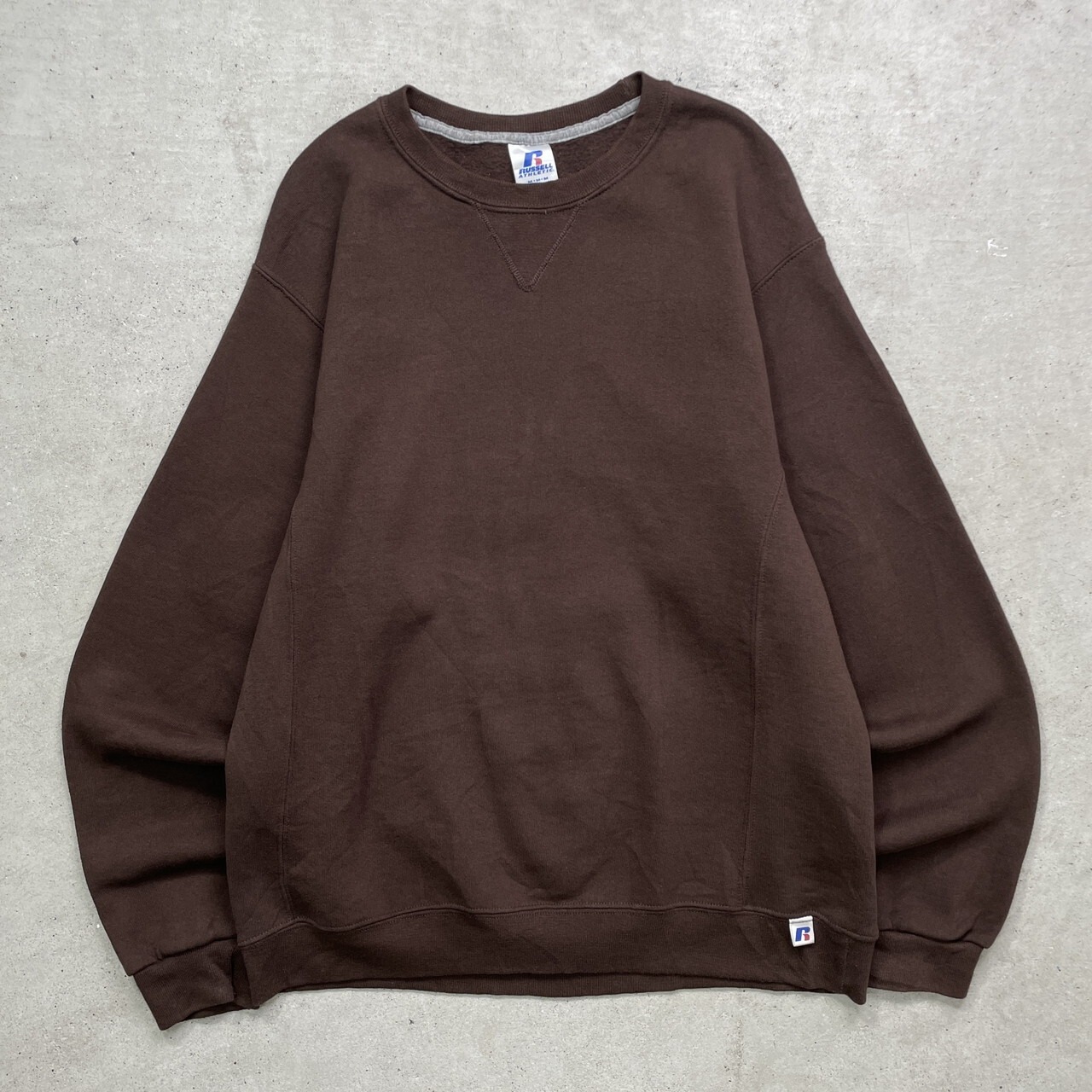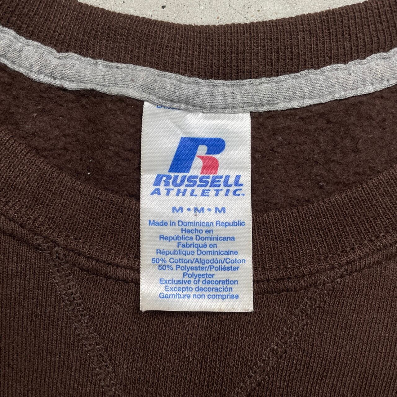 ■00年代 RUSSELL ATHLETIC ラッセル ブランクスウェットシャツ 無地 メンズM 古着 00s Y2K VINTAGE ヴィンテージ アメカジ トレーナー 前Vガゼット 茶色【スウェット】/ブラウン