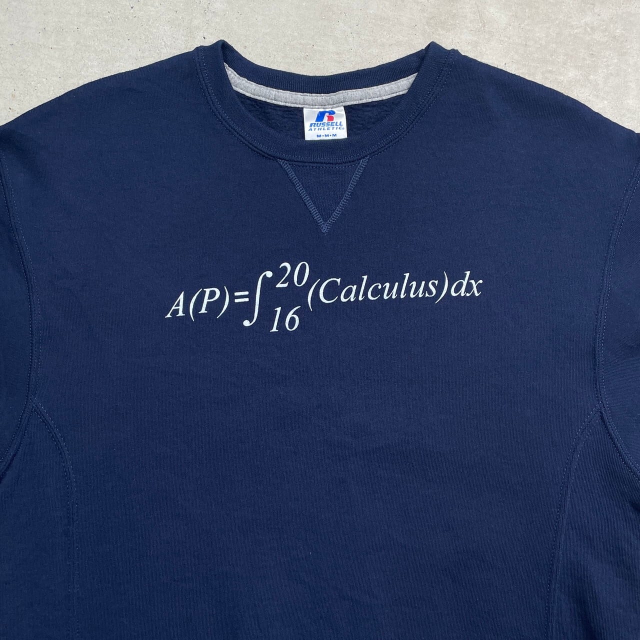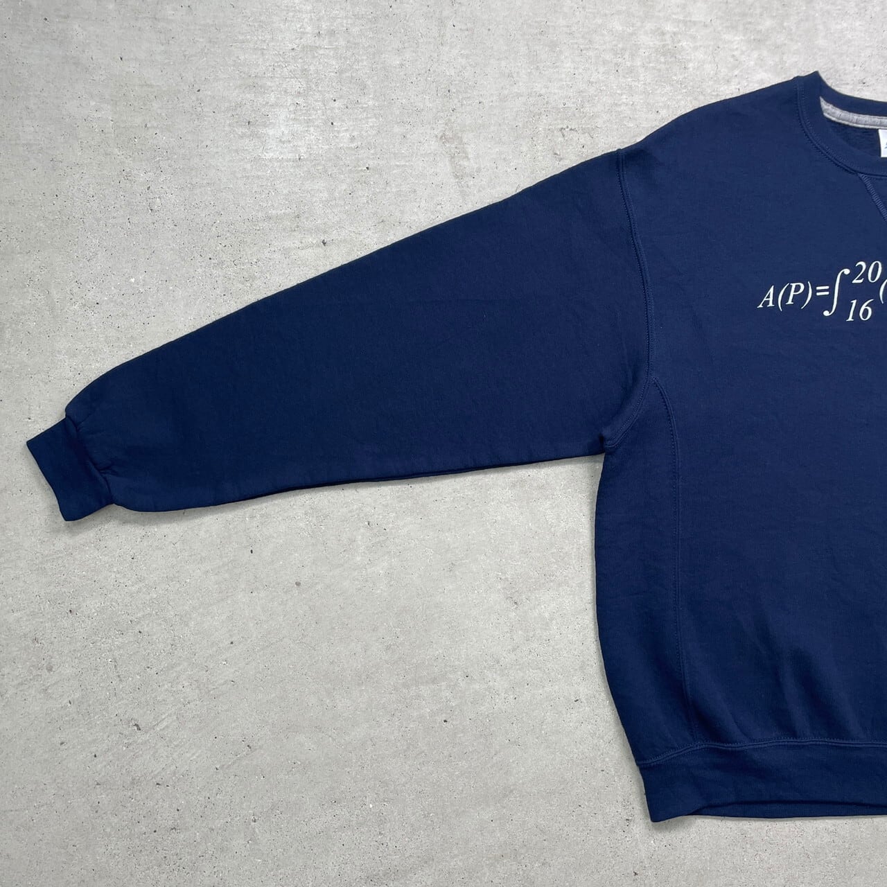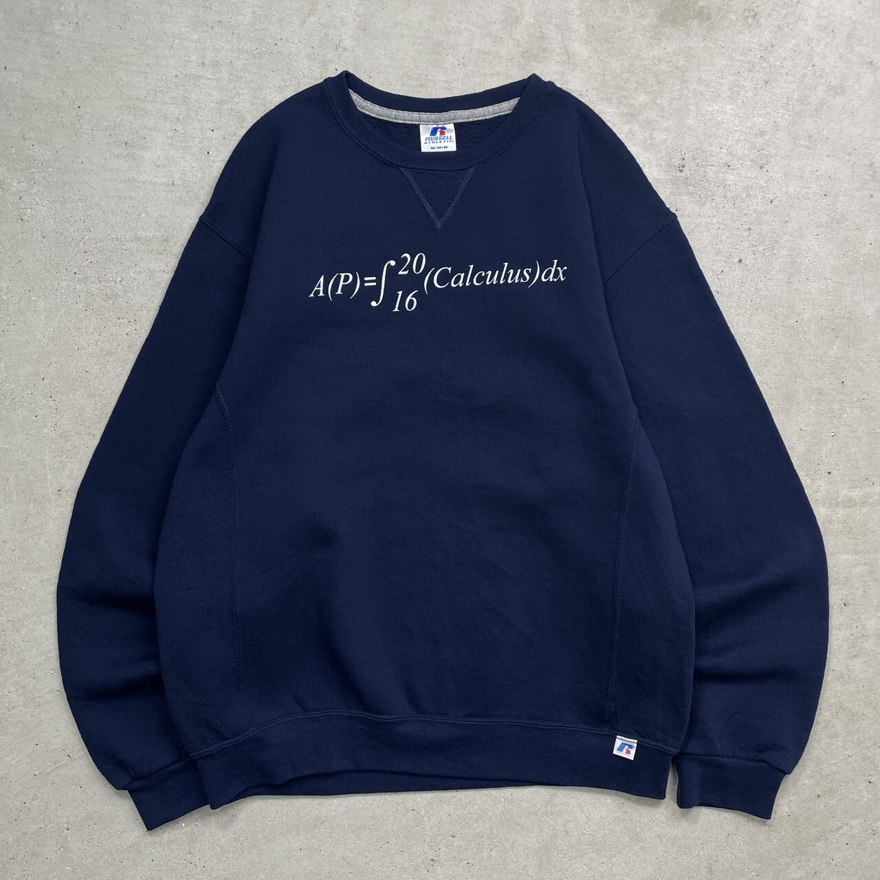 00年代 RUSSELL ATHLETIC ラッセル スウェットシャツ キャラクタープリント 方程式 数式 メンズM 古着 00s Y2K VINTAGE ヴィンテージ アメカジ トレーナー 前Vガゼット 紺色【スウェット】/ネイビーSS30