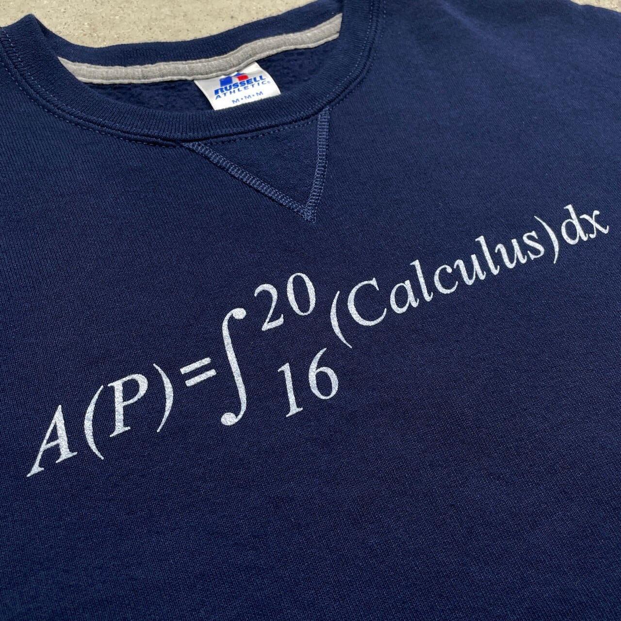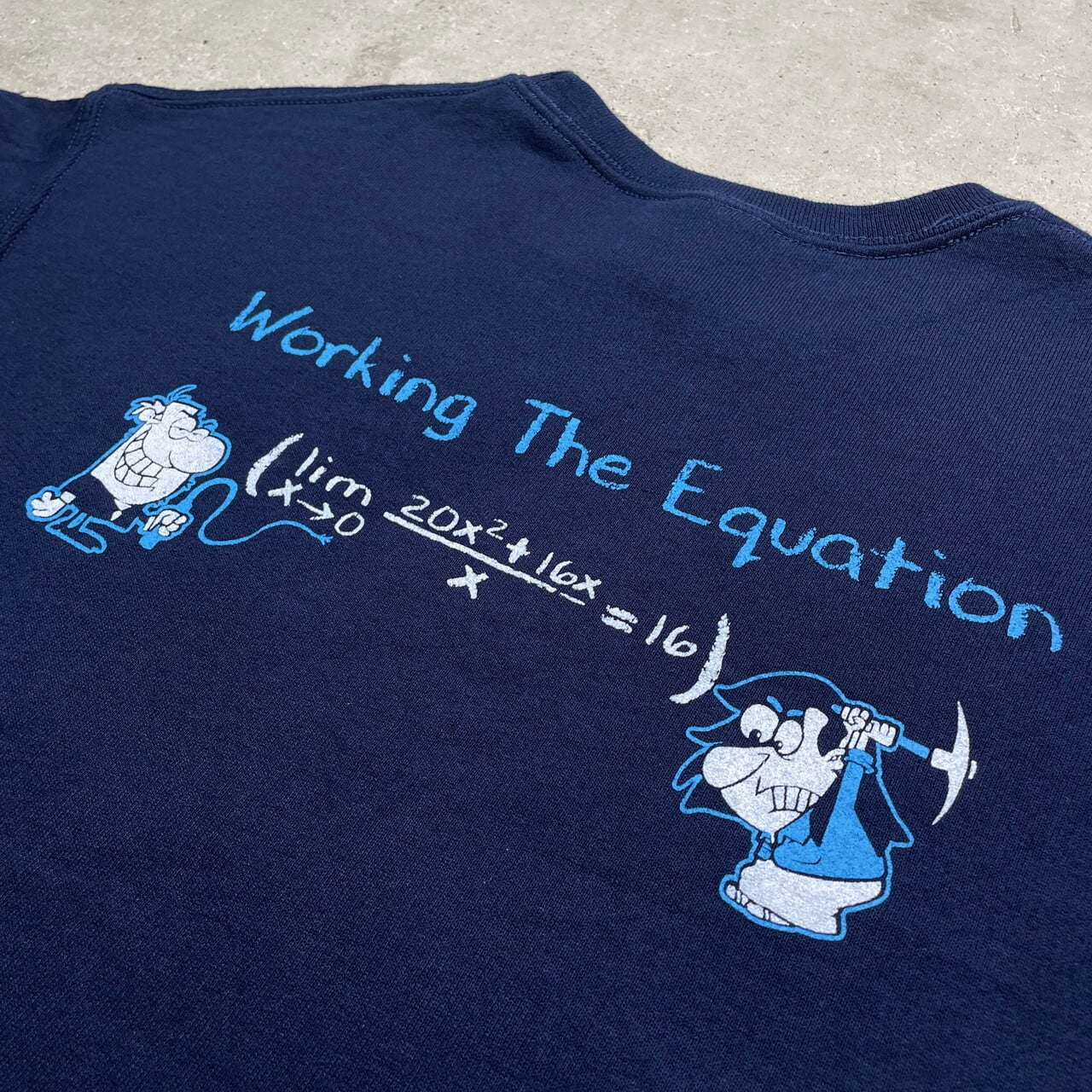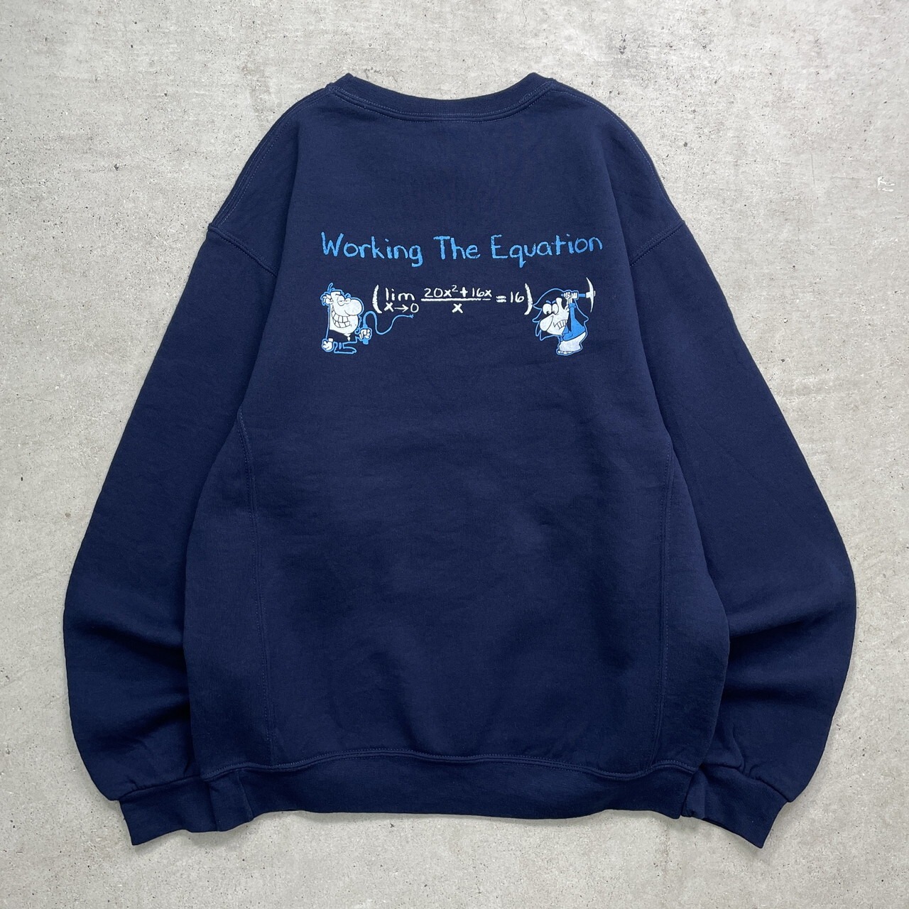 00年代 RUSSELL ATHLETIC ラッセル スウェットシャツ キャラクタープリント 方程式 数式 メンズM 古着 00s Y2K VINTAGE ヴィンテージ アメカジ トレーナー 前Vガゼット 紺色【スウェット】/ネイビーSS30