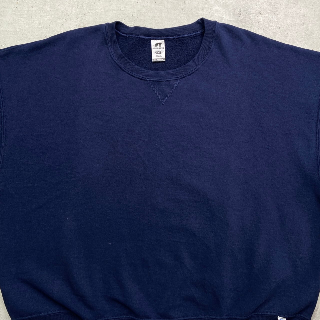 ■00年代 RUSSELL ATHLETIC ラッセル ブランクスウェットシャツ 無地 メンズ2XL 古着 00s Y2K VINTAGE ヴィンテージ アメカジ トレーナー 前Vガゼット 大きいサイズ ビッグサイズ 紺色【スウェット】/ネイビー