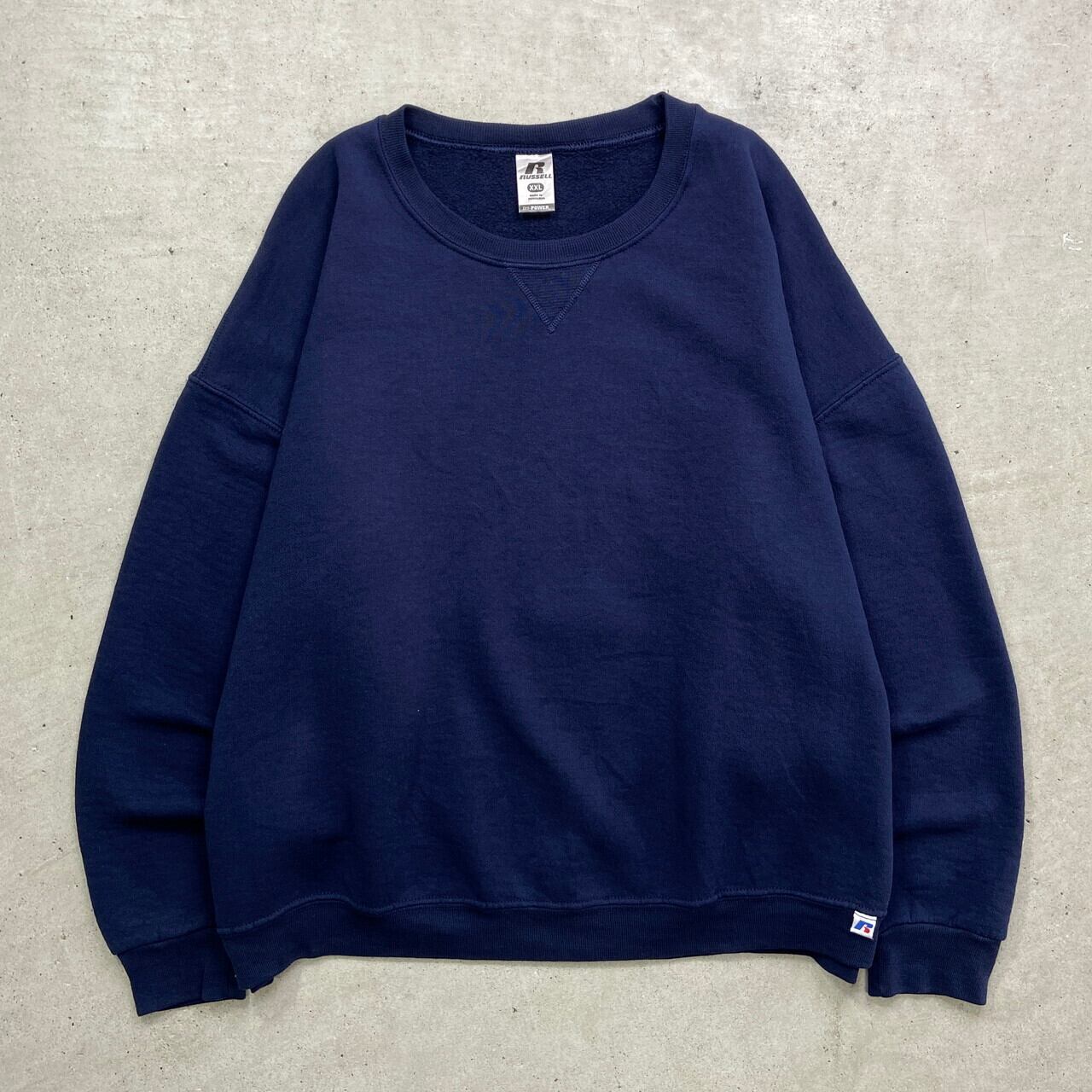00年代 RUSSELL ATHLETIC ラッセル ブランクスウェットシャツ 無地 メンズ2XL 古着 00s Y2K VINTAGE ヴィンテージ アメカジ トレーナー 前Vガゼット 大きいサイズ ビッグサイズ 紺色【スウェット】/ネイビーSS30