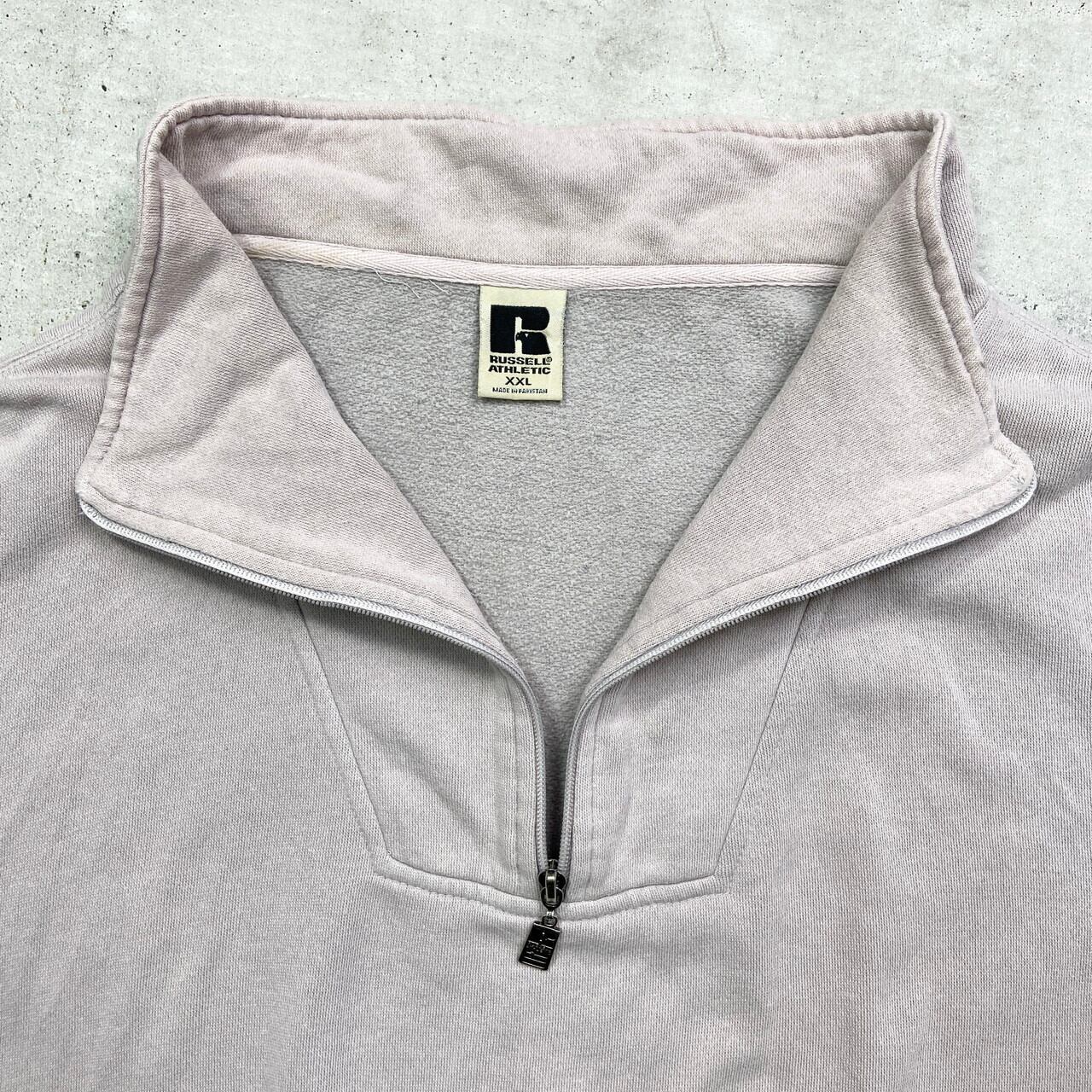 ■00年代 RUSSELL ATHLETIC ラッセル ハーフジップスウェットシャツ ブランクスウェット 無地 メンズ2XL相当 古着 00s Y2K ヴィンテージ VINTAGE アメカジ トレーナー ハイネック 大きいサイズ ビッグサイズ ライトベージュ【スウェット】/ベージュ