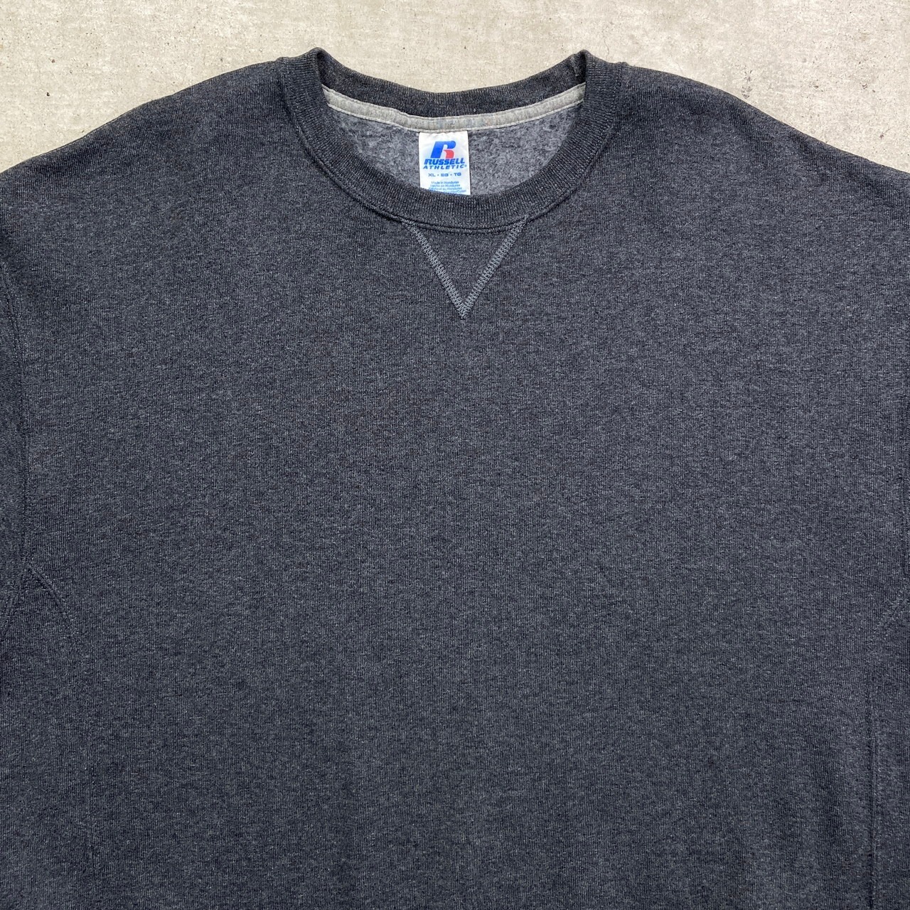 ■00年代 RUSSELL ATHLETIC ラッセル リバースタイプ ブランクスウェットシャツ 無地 メンズXL 古着 00s Y2K VINTAGE ヴィンテージ アメカジ トレーナー 前Vガゼット 灰色【スウェット】/グレー