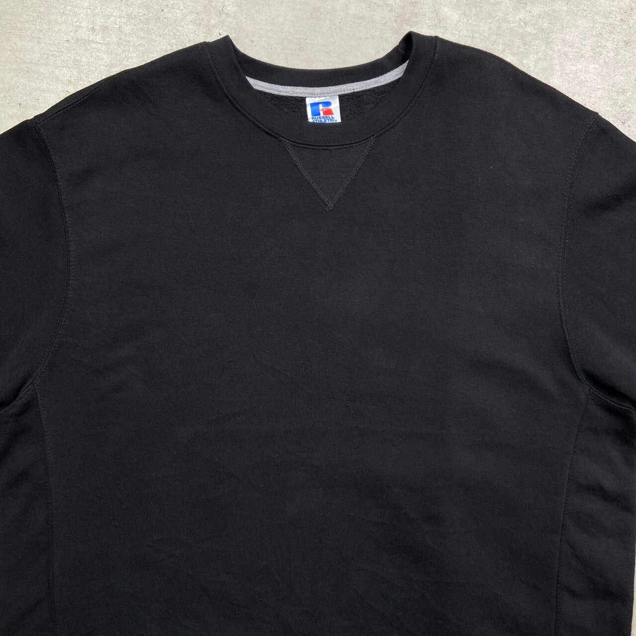 ■00年代 RUSSELL ATHLETIC ラッセル リバースタイプ ブランクスウェットシャツ 無地 メンズ2XL 古着 00s Y2K VINTAGE ヴィンテージ アメカジ トレーナー 前Vガゼット 大きいサイズ ビッグサイズ 黒色【スウェット】/ブラック