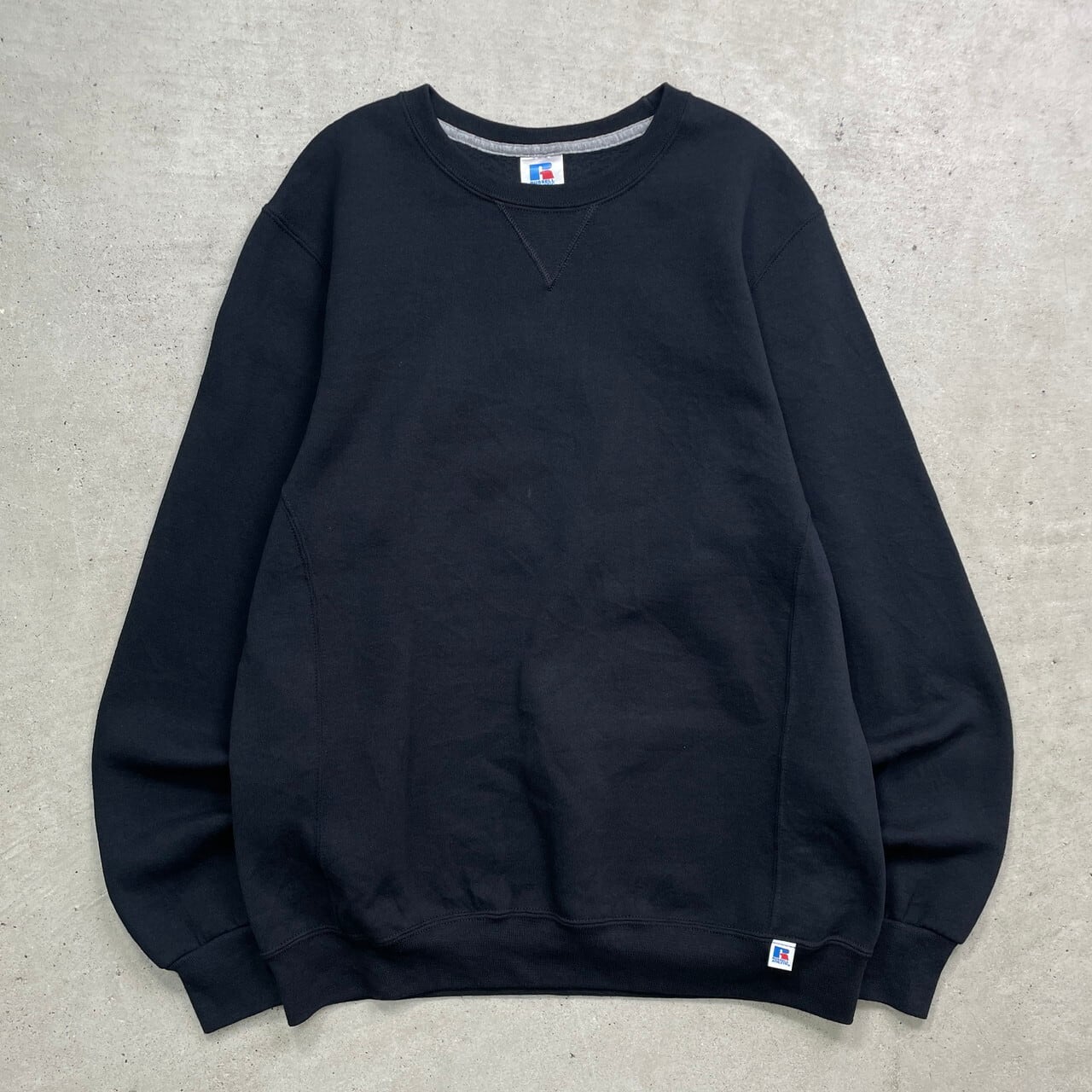00年代 RUSSELL ATHLETIC ラッセル リバースタイプ ブランクスウェットシャツ 無地 メンズL相当 古着 00s Y2K VINTAGE ヴィンテージ アメカジ トレーナー 前Vガゼット 黒色【スウェット】/ブラックSS30