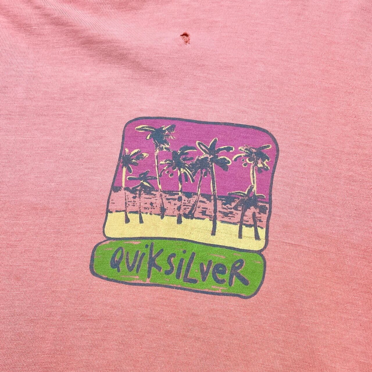 90年代 イタリア製 Quiksilver クイックシルバー プリント Tシャツ サーフ メンズM 古着 90s シングルステッチ ヴィンテージ VINTAGE サーモンピンク【Tシャツ】/ピンク