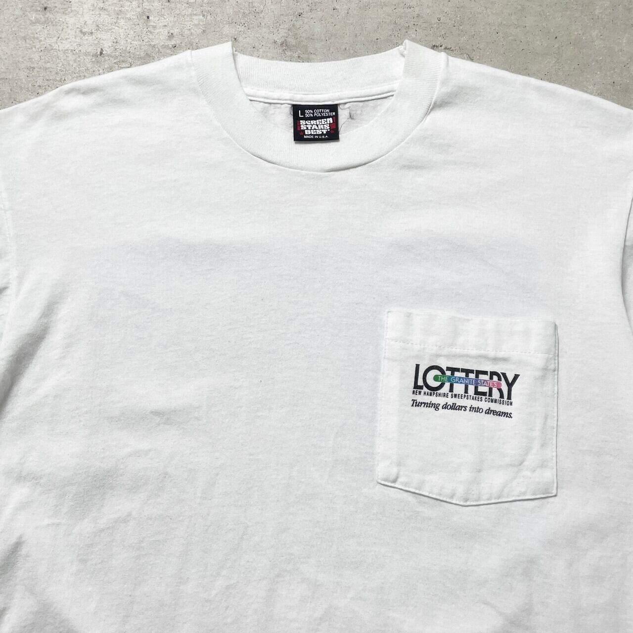 90年代 USA製 LOTTERY アドバタイジングプリント Tシャツ 宝くじ メンズL 古着 90s シングルステッチ ヴィンテージ VINTAGE 企業ロゴ 白色【Tシャツ】/ホワイト【SS50】