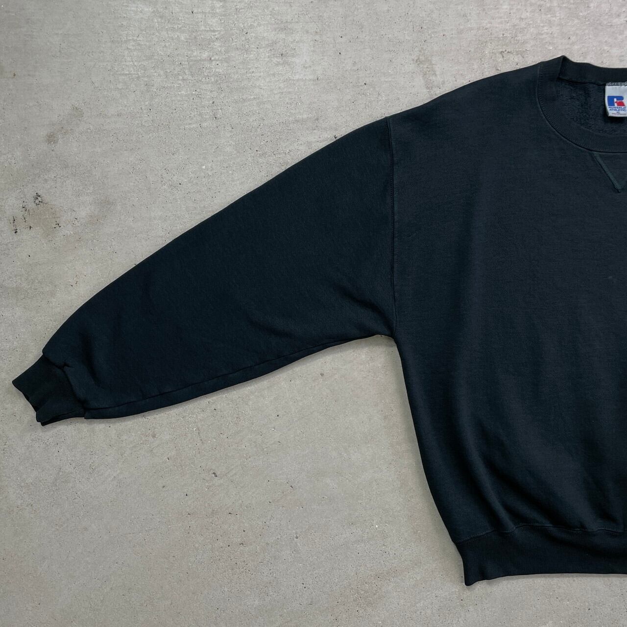 00年代 刺繍タグ RUSSELL ATHLETIC ラッセル 後染めブラック ブランクスウェットシャツ 無地 メンズXL 古着 00s Y2K VINTAGE ヴィンテージ アメカジ トレーナー 前Vガゼット ブラックグリーン 墨黒【スウェット】/ブラック