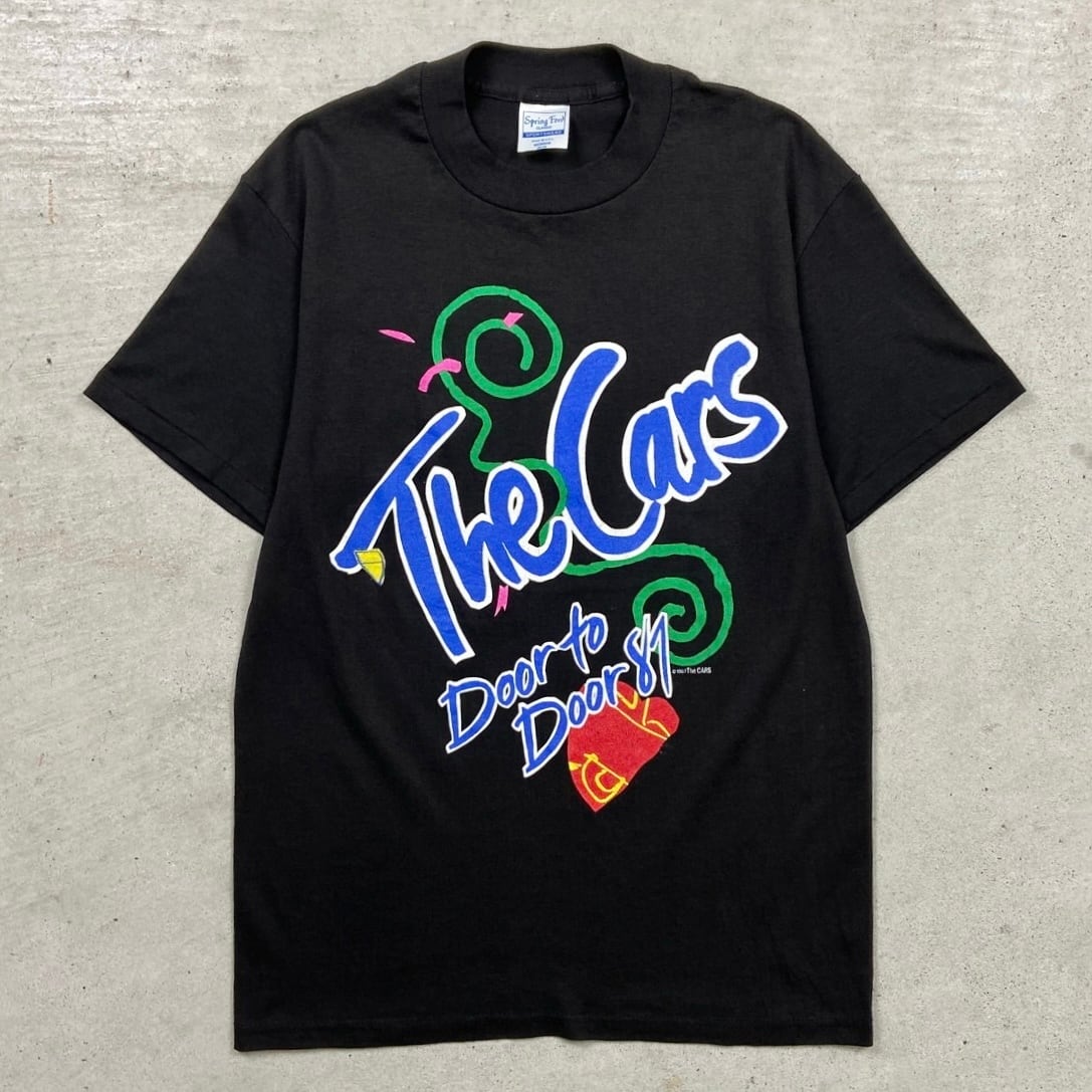 80年代 USA製 THE CARS ザ カーズ DOOR TO DOOR バンドTシャツ バンT ツアーT メンズS相当 レディースM相当 古着 80s 袖シングルステッチ ヴィンテージ VINTAGE 黒【Tシャツ】/ブラック【SS50】