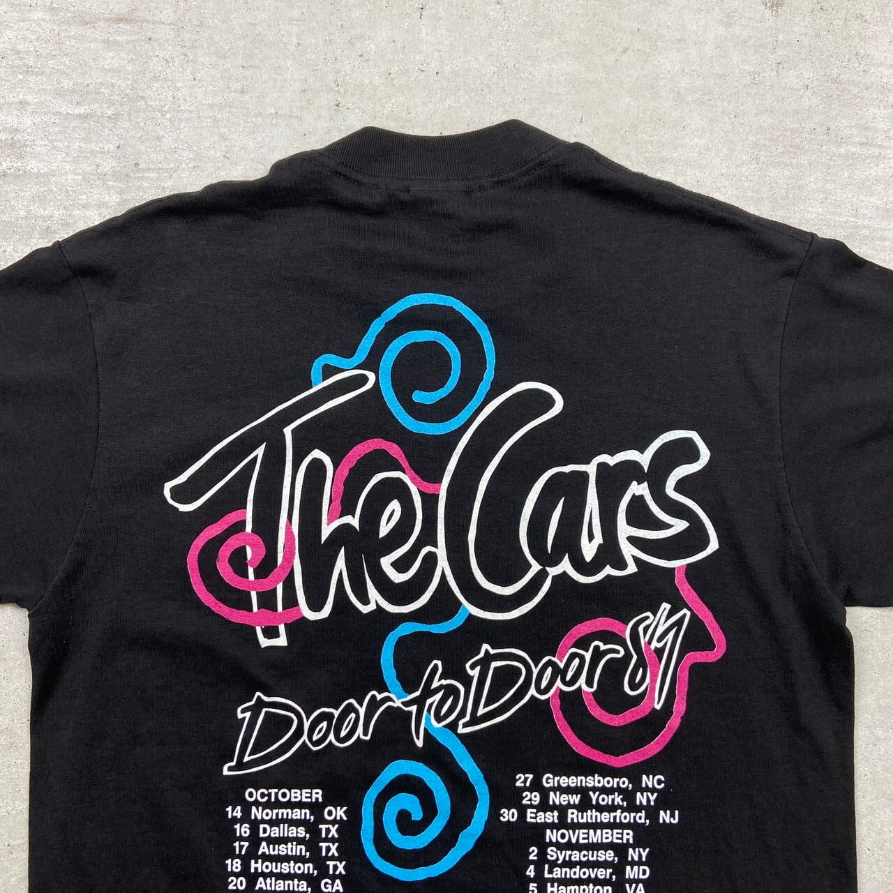 ■80年代 USA製 THE CARS ザ カーズ DOOR TO DOOR バンドTシャツ バンT ツアーT メンズS相当 レディースM相当 古着 80s 袖シングルステッチ ヴィンテージ VINTAGE 黒【Tシャツ】/ブラック