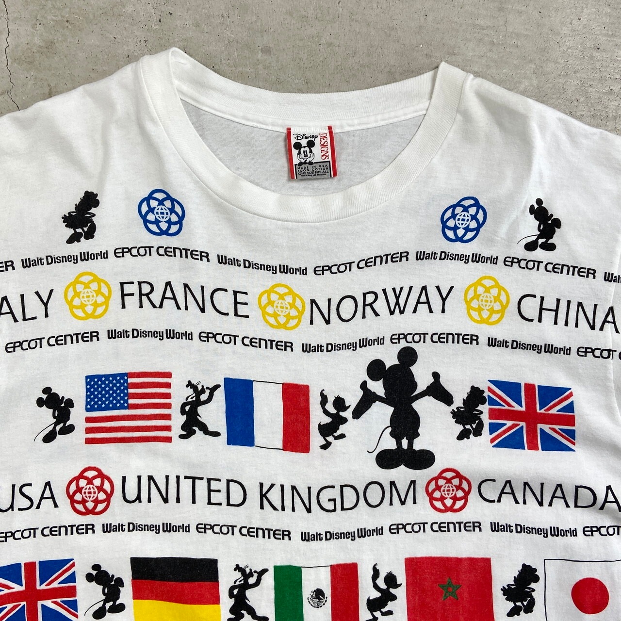 90年代 USA製 Walt Disney World ウォルトディズニーワールド ミッキーマウス キャラクター オールオーバープリントTシャツ メンズ2XL相当 古着 90s シングルステッチ ヴィンテージ VINTAGE ビッグサイズ 白色【Tシャツ】/ホワイト【SS50】【SS26-30】