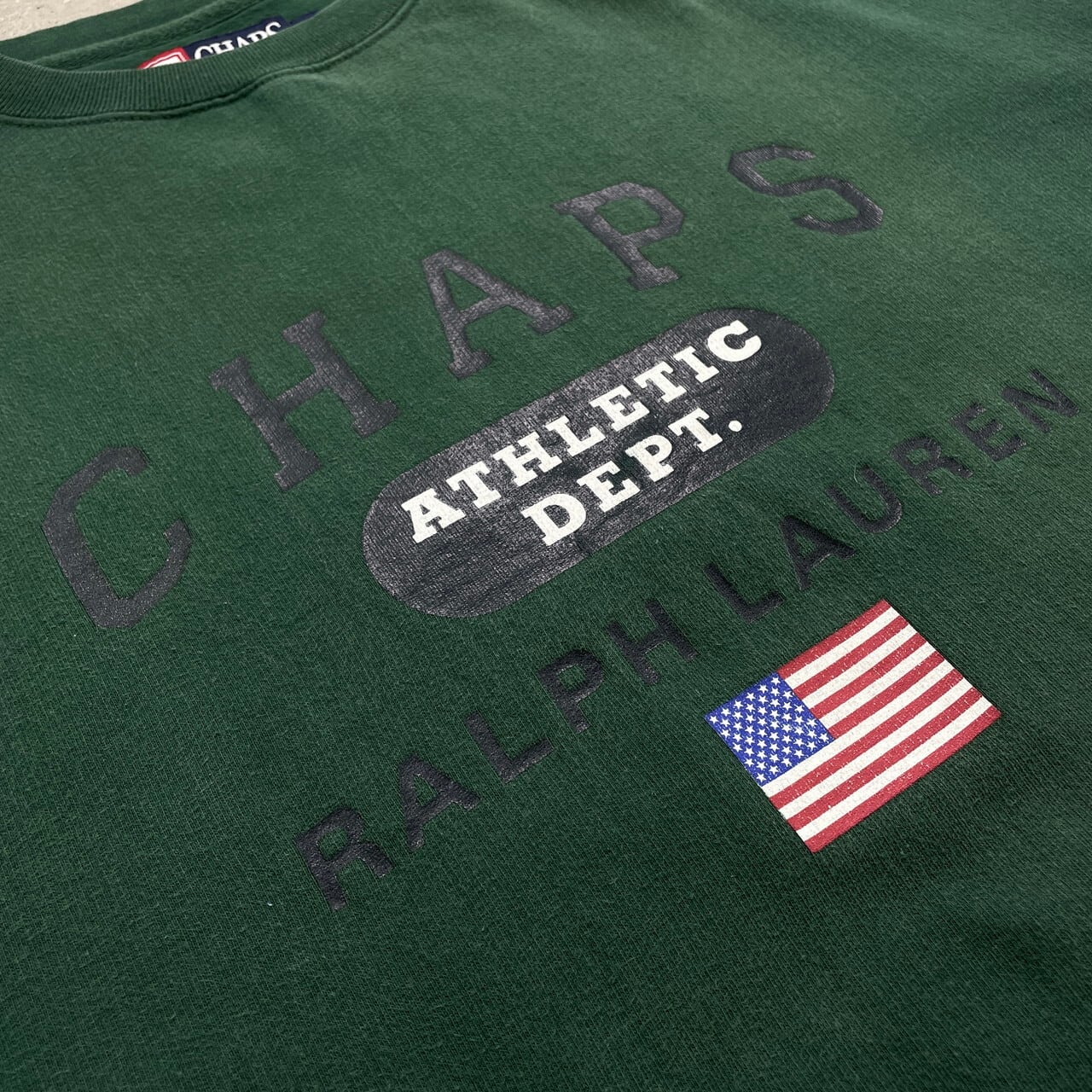 ■90年代 CHAPS Ralph Lauren チャップス ラルフローレン スウェットシャツ ビッグロゴプリント メンズ2XL相当 古着 90s ヴィンテージ VINTAGE ビッグサイズ 大きいサイズ 緑色【スウェット】/グリーン