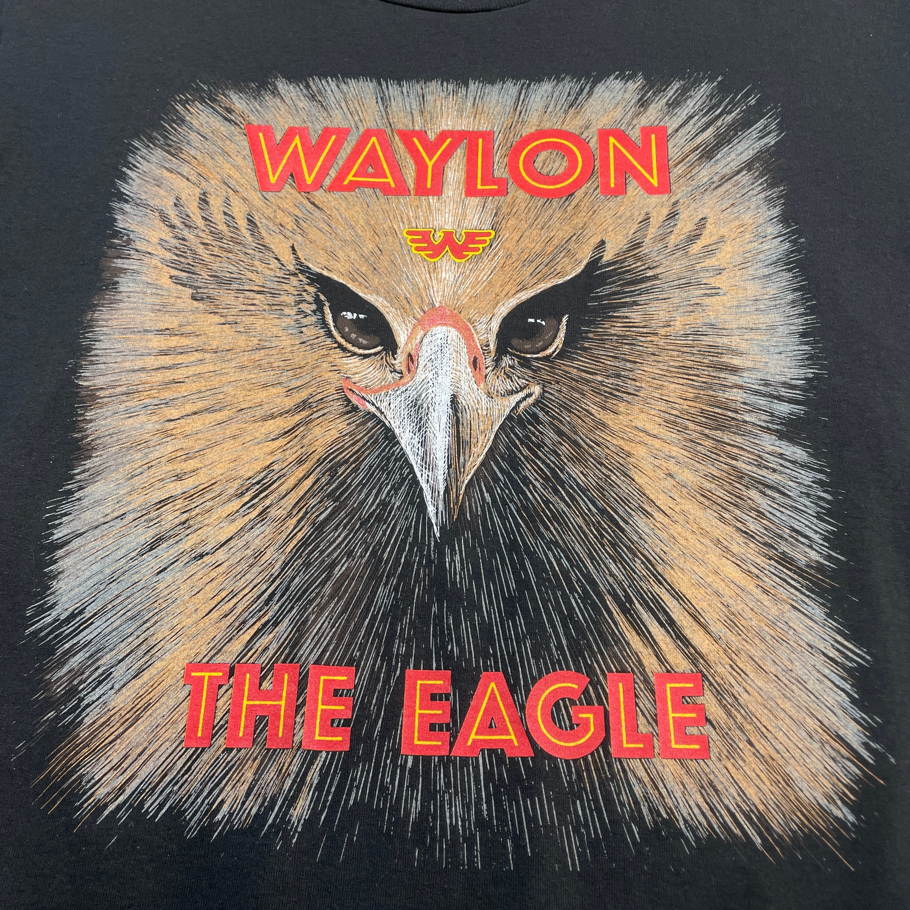 ■90年代 WAYLON ウェイロン THE EAGLE アーティスト バンドTシャツ カントリー メンズXL 相当 古着 90s ヴィンテージ VINTAGE シングルステッチ フェードブラック 墨黒 【Tシャツ】/ブラック