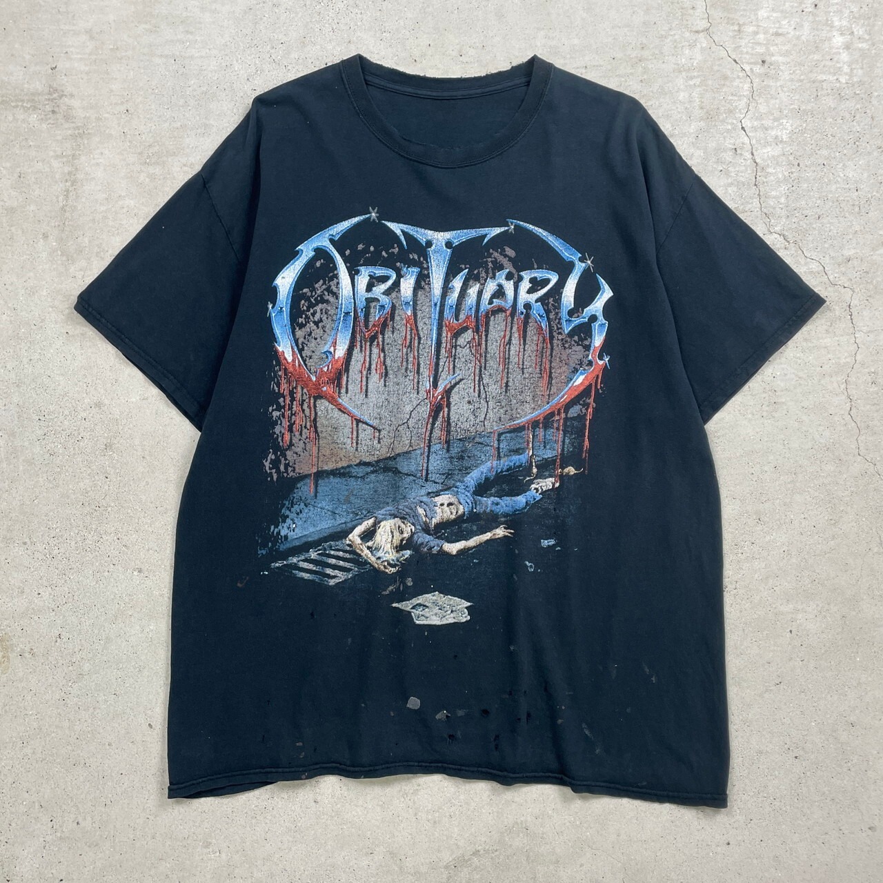 00年代 OBITUARY オビチュアリー バンドTシャツ バンT SLOWLY WE ROT デスメタル メンズXL相当 古着 00s Y2K リプリントフェードブラック 黒【Tシャツ】/ブラック【SS30】【SS26-20】