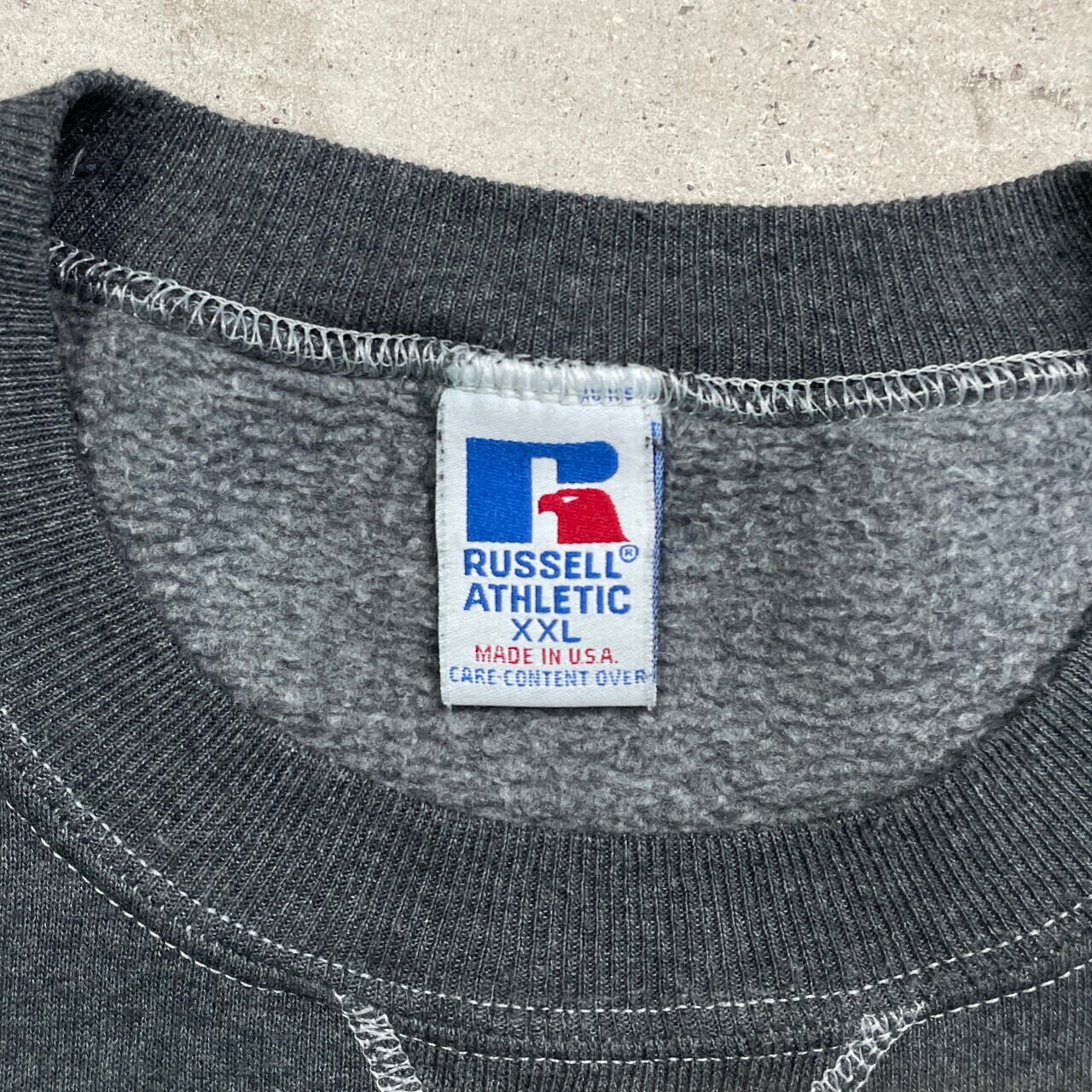 90年代 USA製 RUSSELL ATHLETIC ラッセル ブランクスウェットシャツ 無地 メンズXL相当 古着 90s VINTAGE ヴィンテージ アメカジ トレーナー 前Vガゼット 刺繍タグ 灰色【スウェット】/グレー