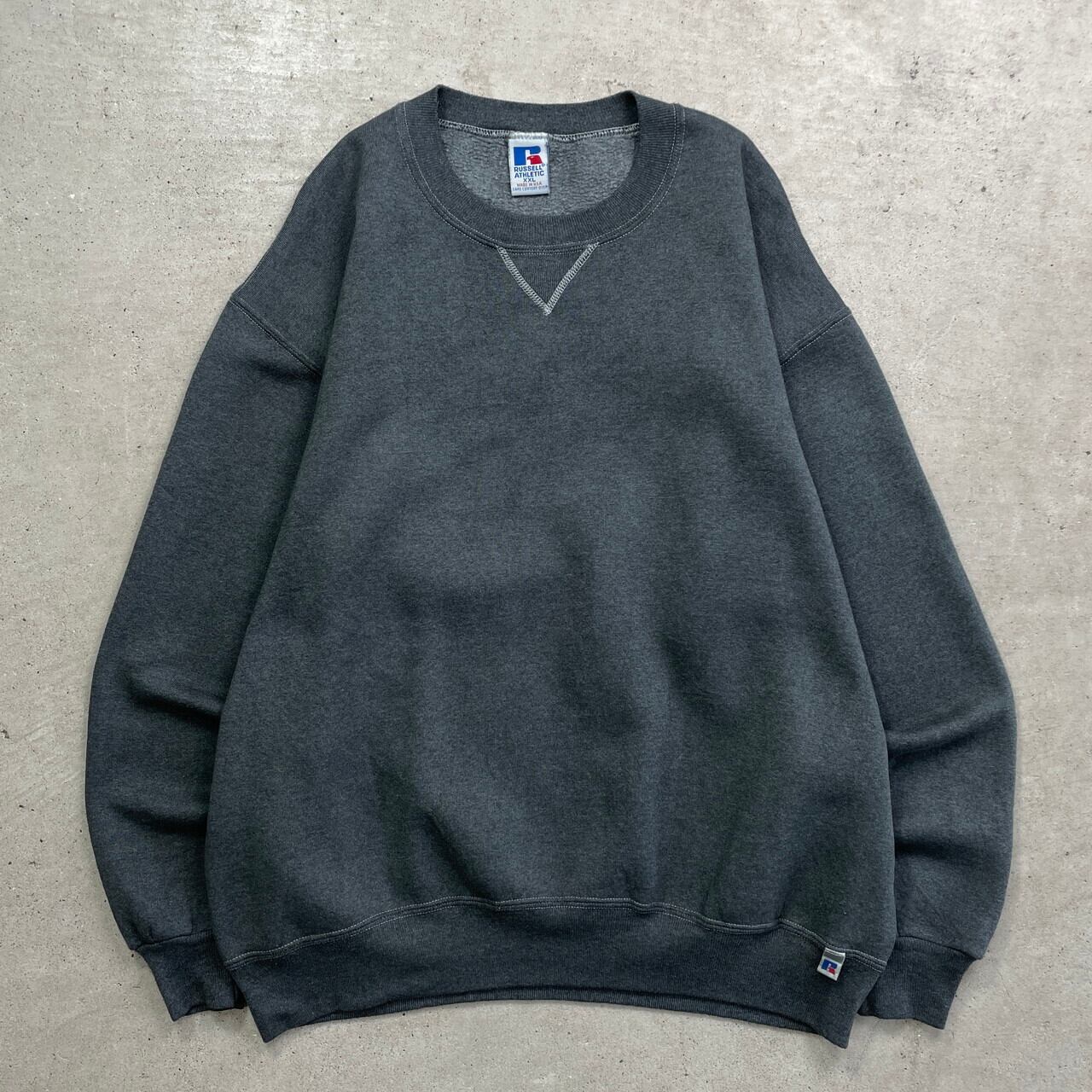 ■90年代 USA製 RUSSELL ATHLETIC ラッセル ブランクスウェットシャツ 無地 メンズXL相当 古着 90s VINTAGE ヴィンテージ アメカジ トレーナー 前Vガゼット 刺繍タグ 灰色【スウェット】/グレー
