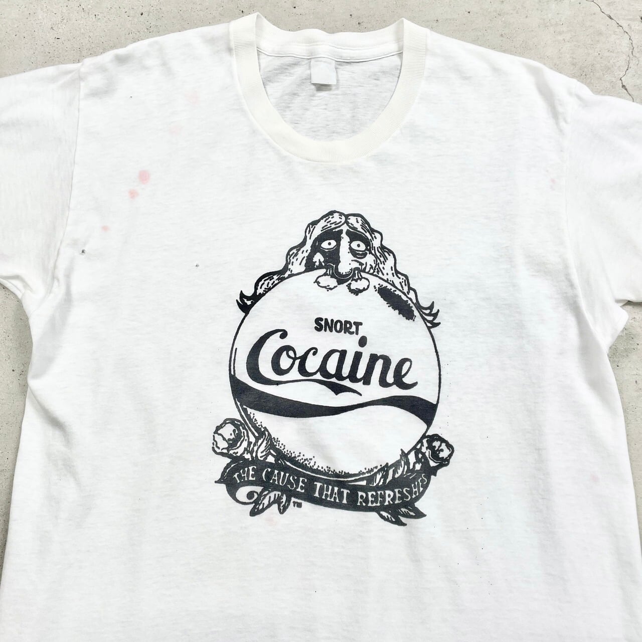 70年代 SNORT COCAINE ドラッグ パロディプリントTシャツ メンズM相当 古着 70s シングルステッチ ヴィンテージ VINTAGE コカイン 白色【Tシャツ】/ホワイト