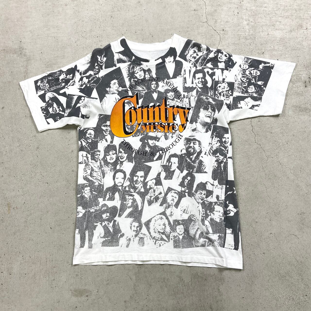 90年代 COUNTRY MUSIC アーティスト バンドTシャツ オールオーバープリント メンズXL相当 古着 90s ヴィンテージ VINTAGE 100PERCENT AMERICAN THROUGH & THROUGH カントリーミュージック シングルステッチ ホワイト グレー 白 灰色 【Tシャツ】/マルチカラー【SS20】