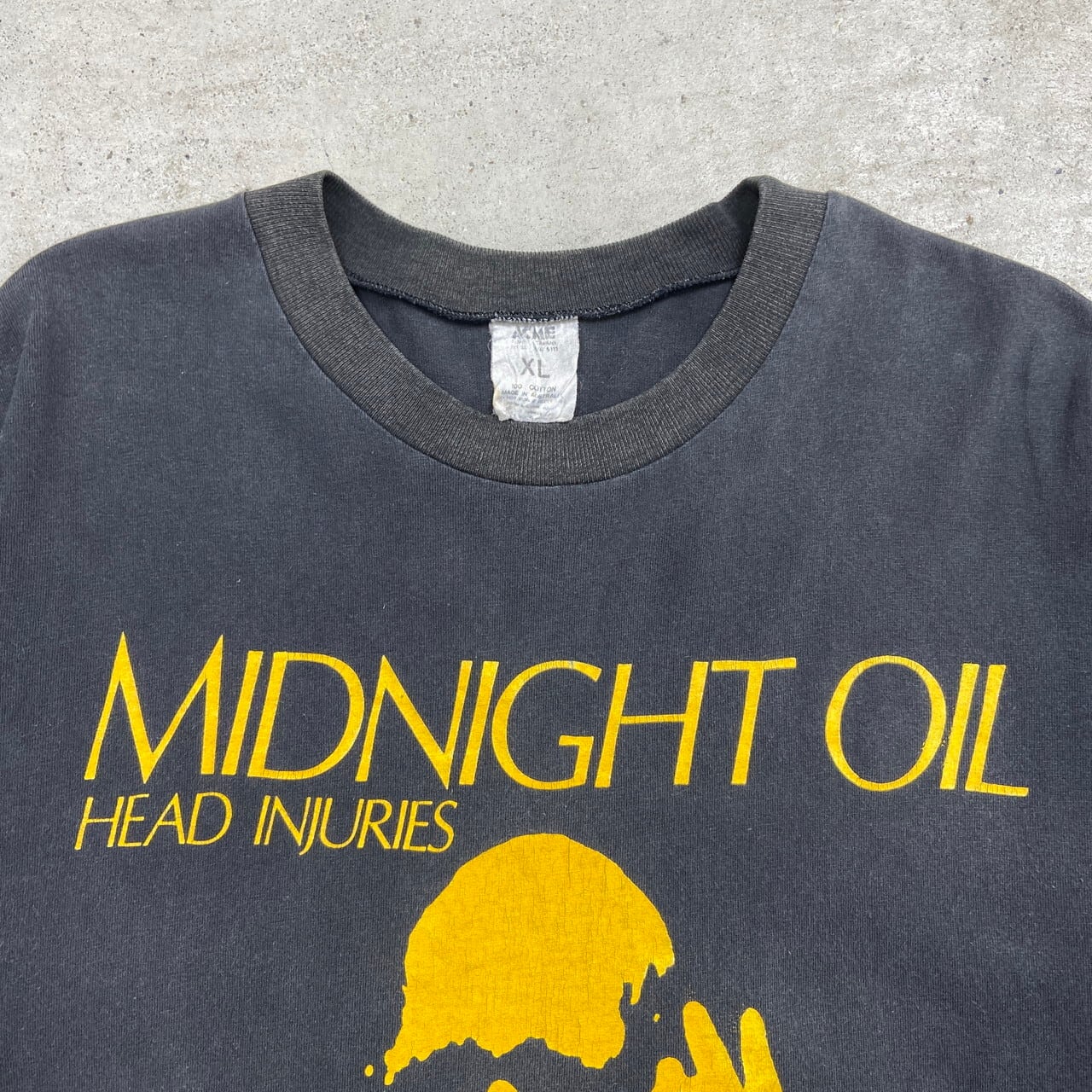 ■80~90年代 MIDNIGHT OIL ミッドナイト・オイル HEAD INJURIES バンドTシャツ バンT メンズXL 古着 80s 90s シングルステッチ ヴィンテージ VINTAGE フェードブラック 墨黒【Tシャツ】/ブラック