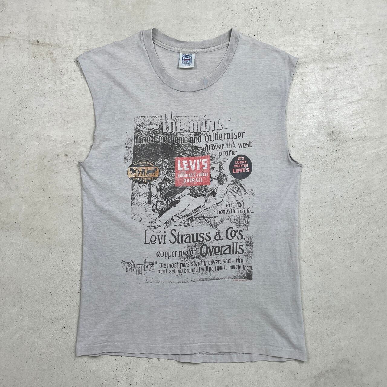 90年代 USA製 Levi's リーバイス プリント タンクトップ ノースリーブ カットオフ メンズXL相当 古着 90s シングルステッチ ヴィンテージ VINTAGE フェードグレー 灰色【タンクトップ】/グレー