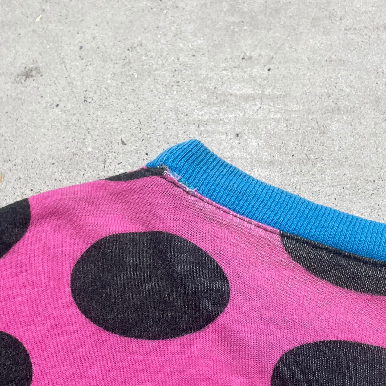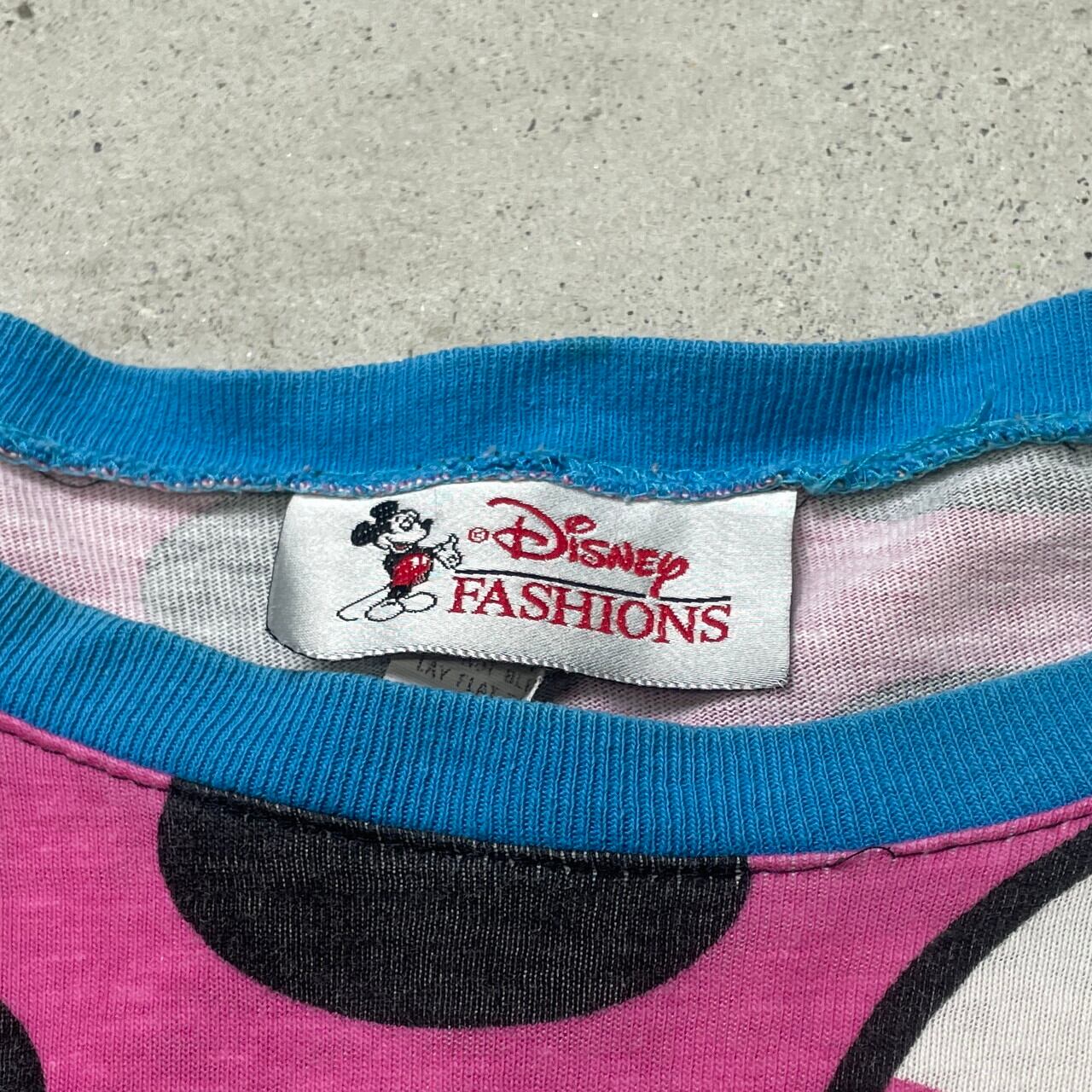 90年代 USA製 Disney FASHIONS ディズニー ミニーマウス キャラクター プリント オールオーバープリントTシャツ レディース3XL相当 古着 90s シングルステッチ 袖ダブルフェイス ヴィンテージ VINTAGE ドット柄【Tシャツ】/ピンク