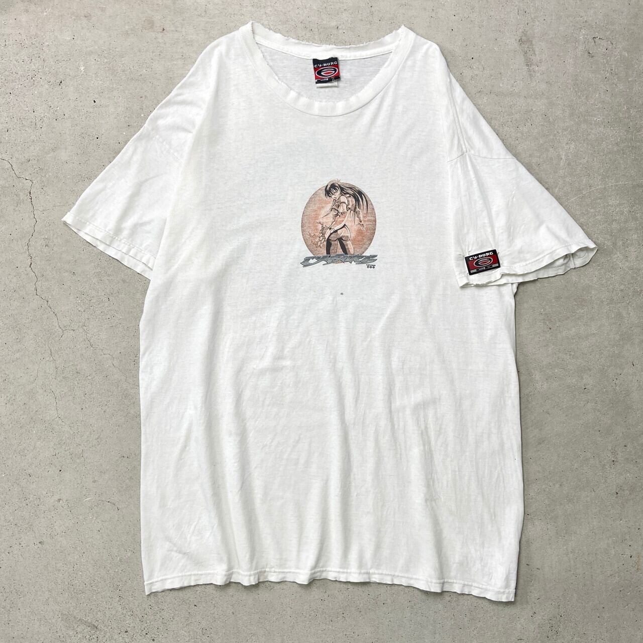 00年代 CY-BORG キャラクタープリントTシャツ メンズ2XL相当 古着 00s ヴィンテージ VINTAGE Y2K ボロ 襤褸 サイボーグ ラバーパッチ 白 ビッグサイズ 大きいサイズ【Tシャツ】/ホワイト【SS20】
