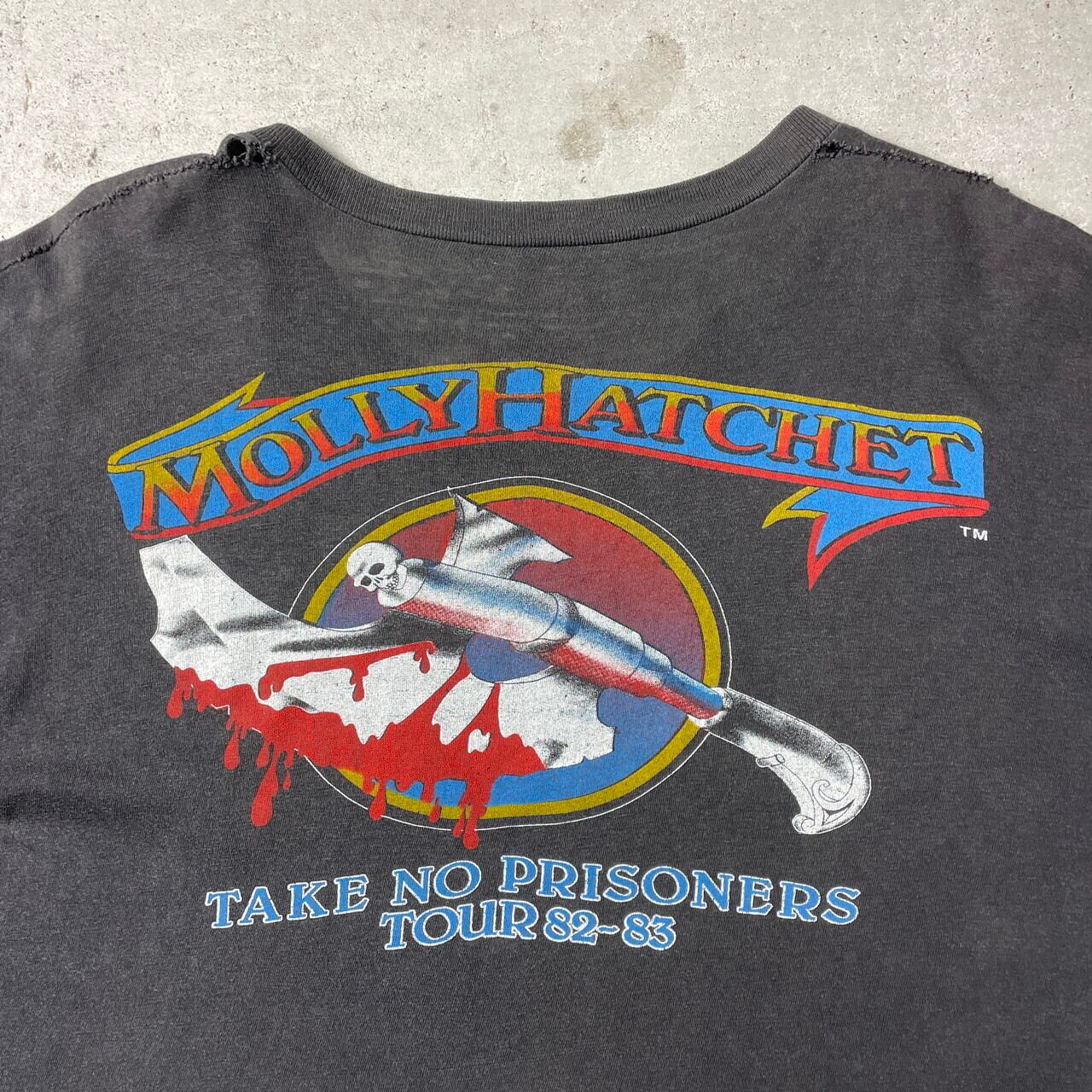 80年代 Molly Hatchet Take no prisoners バンドTシャツ メンズM-L相当 古着 80s ビンテージ ヴィンテージ 1982-83 シングルステッチ 襤褸 ボロ 両面プリント バックプリント フェードブラック 墨黒 【Tシャツ】