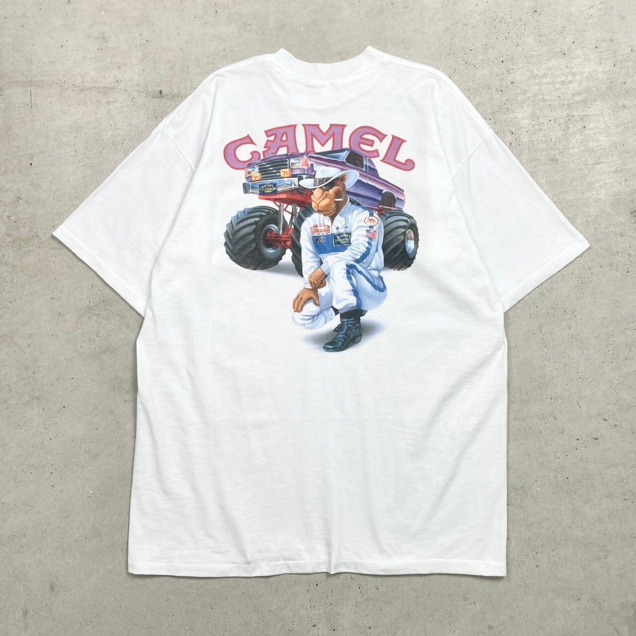 90年代 CAMEL キャメル タバコ アドバタイジングプリントTシャツ ポケT バックプリント メンズXL相当 古着 90s シングルステッチ ヴィンテージ VINTAGE 企業ロゴ ポケットT モーターサイクル 白色【Tシャツ】/ホワイト