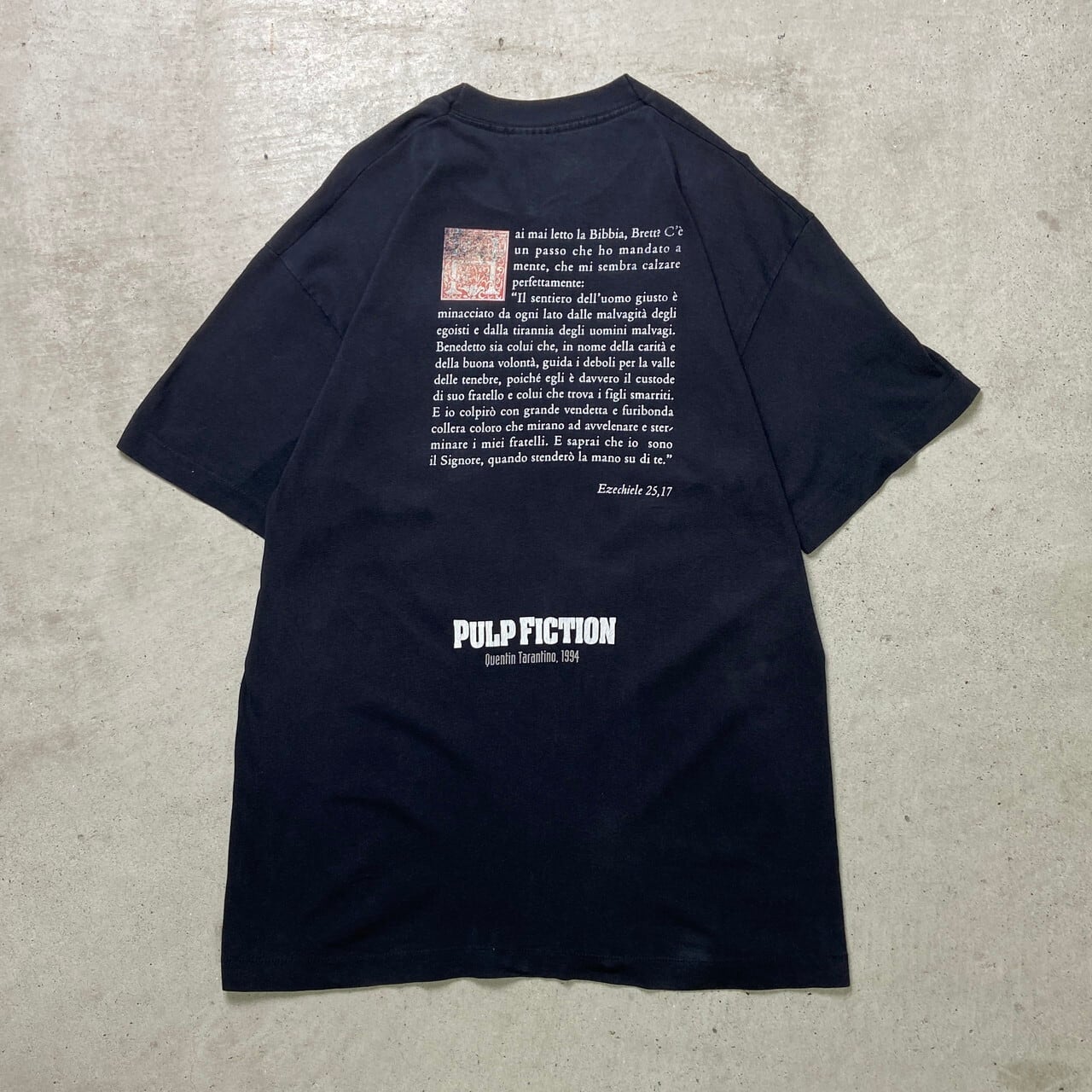 ■90年代 PULP FICTION パルプ・フィクション ムービープリントTシャツ メンズL相当 古着 90s ヴィンテージ VINTAGE ユーロ イタリア 両面プリント シングルステッチ 映画 フェードブラック 墨黒【Tシャツ】/ブラック
