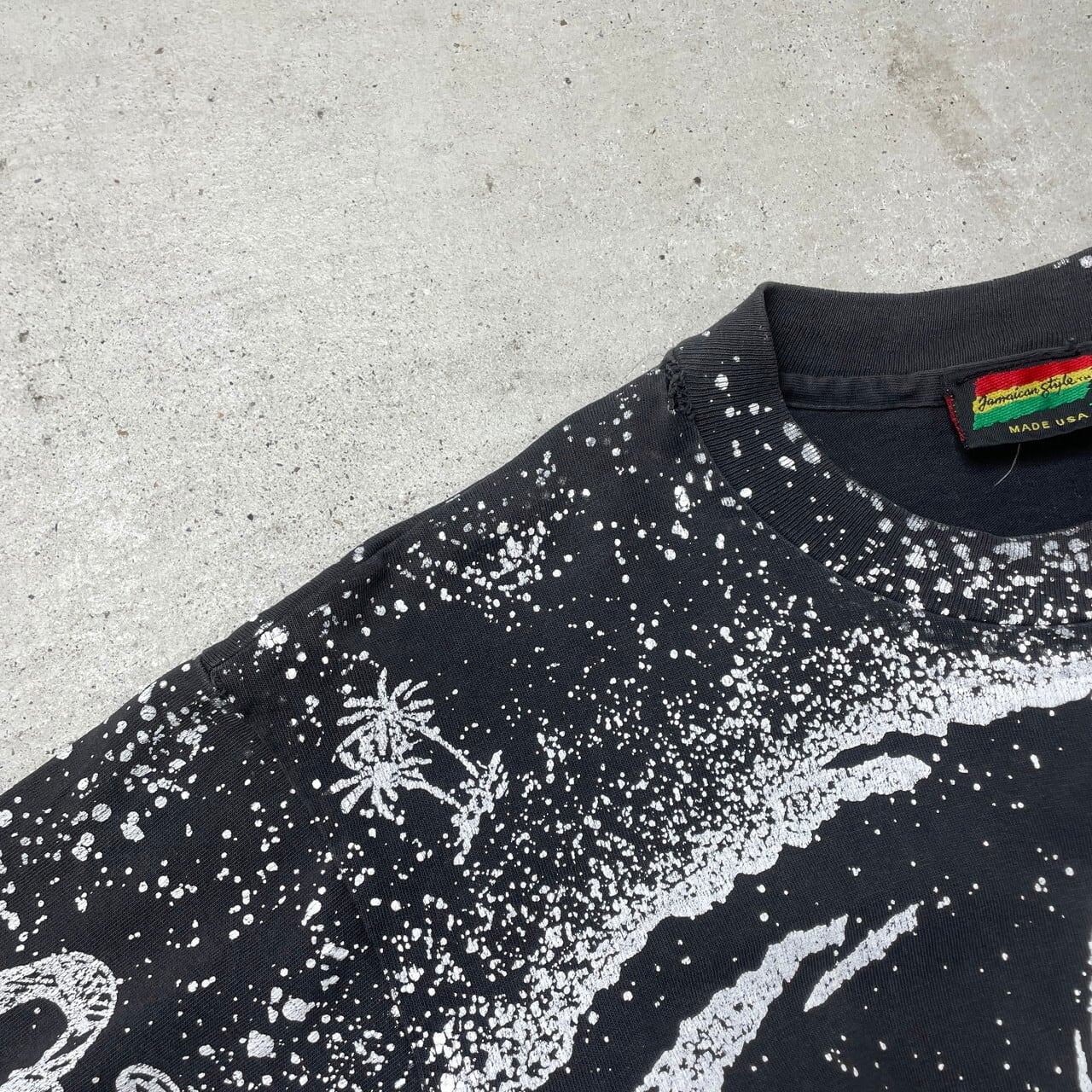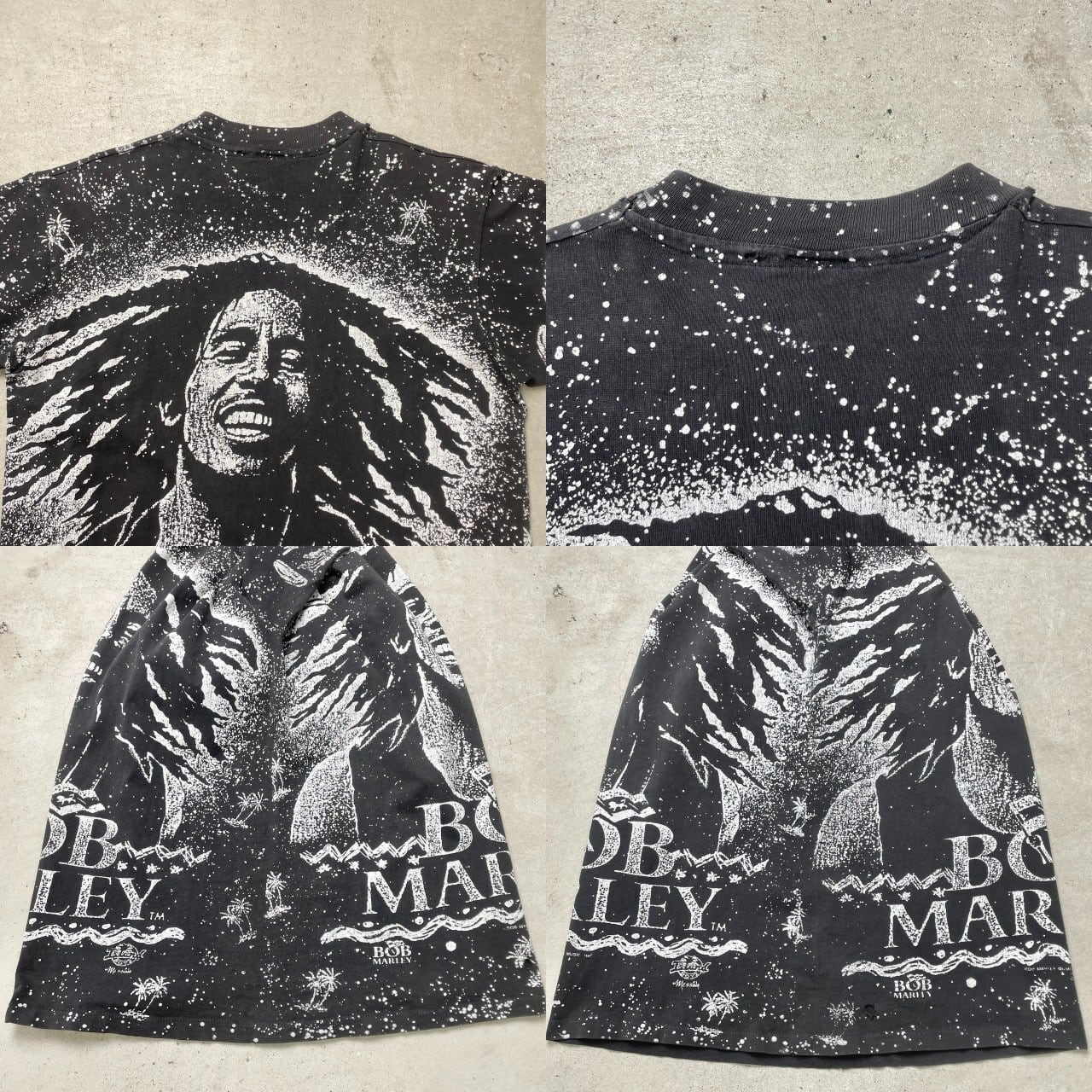 90年代 USA製 BOB MARLEY ボブ・マーリー アーティスト オールオーバープリント バンドTシャツ バンT メンズL 古着 90s シングルステッチ ヴィンテージ VINTAGE 総柄 【Tシャツ】/ブラック