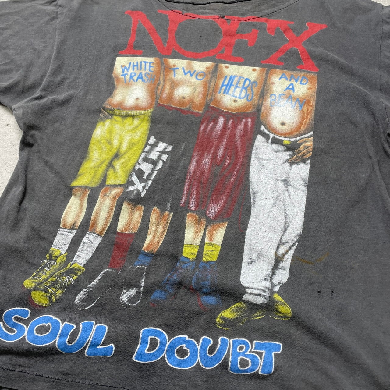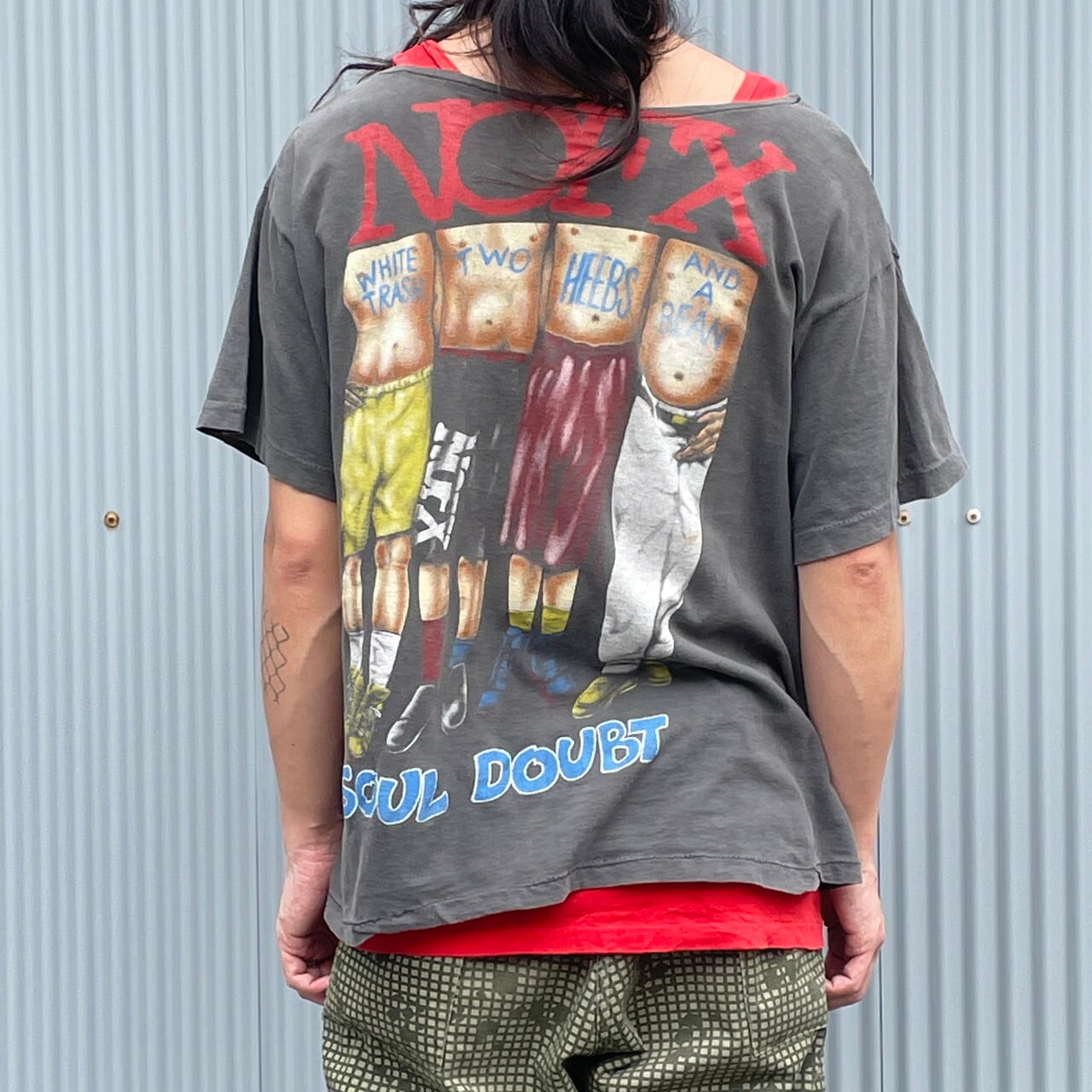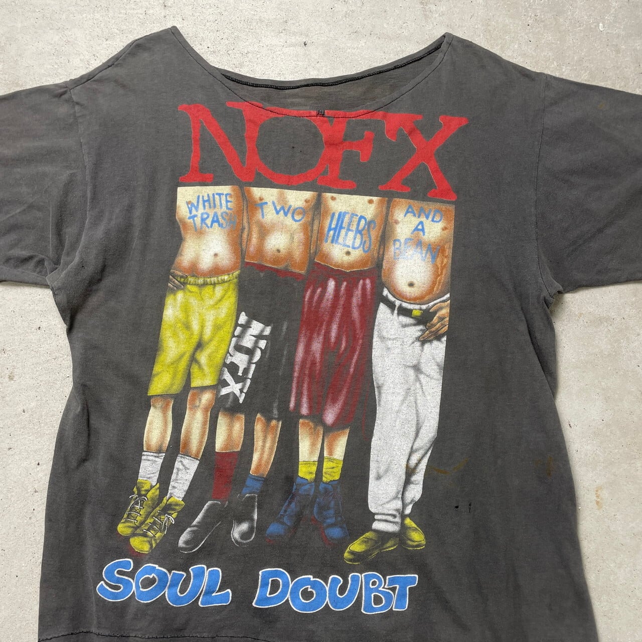 ■90年代~ NOFX ノーエフエックス バンドTシャツ バンT SOUL DOUBT メンズM-L相当 古着 シングルステッチ 90s ヴィンテージ VINTAGE フェードブラック 墨黒 黒色【Tシャツ】/ブラック
