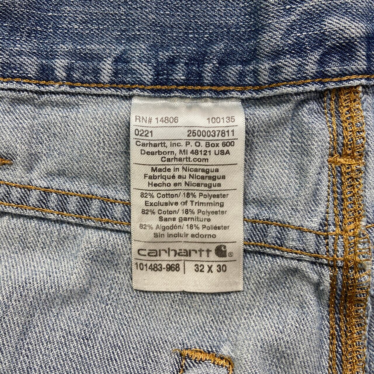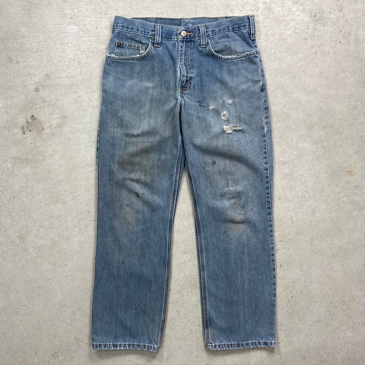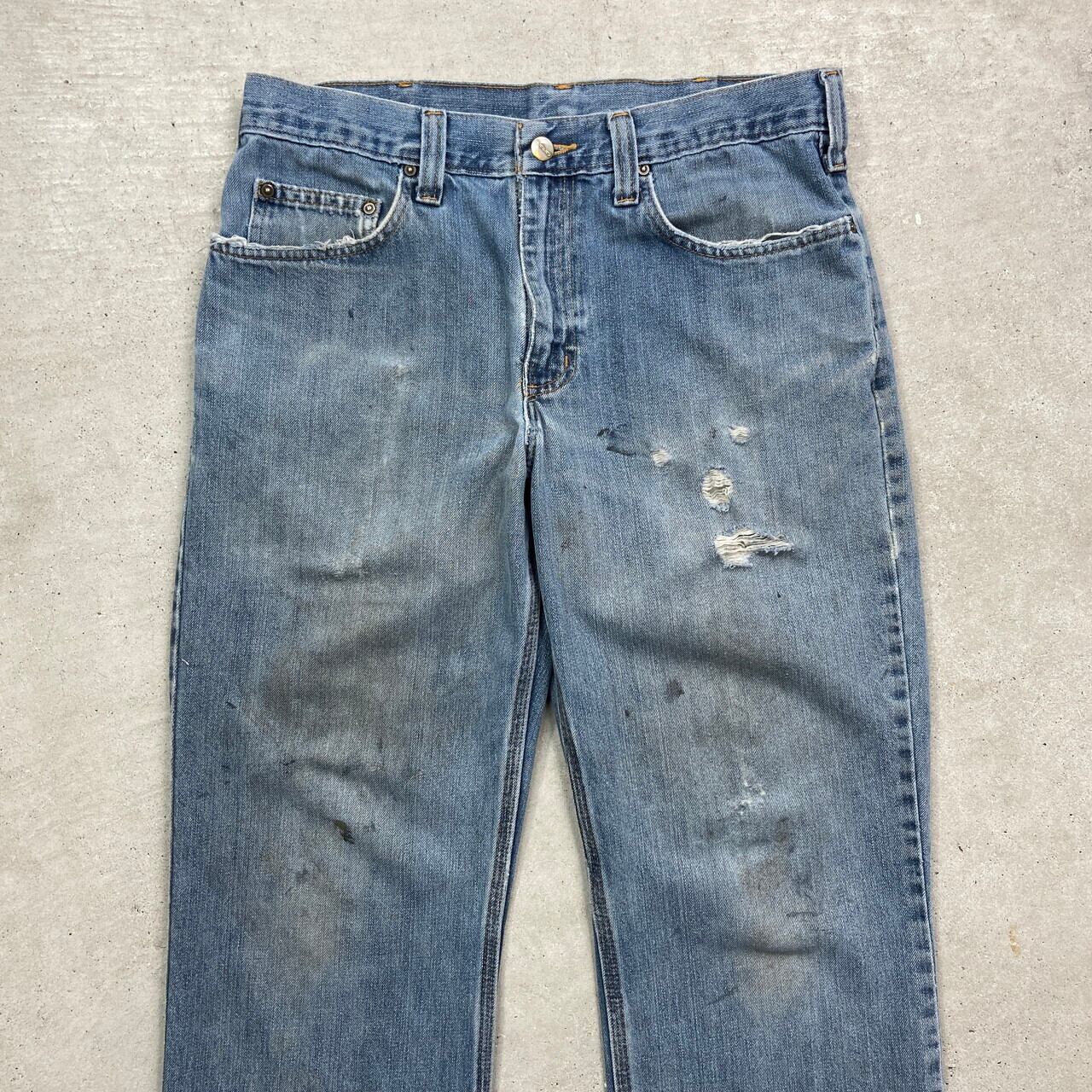 ■Carhartt カーハート テーパード ダメージデニムパンツメンズW32 古着 アメカジ クラッシュデニム ワークパンツ 【デニムパンツ】/ブルー