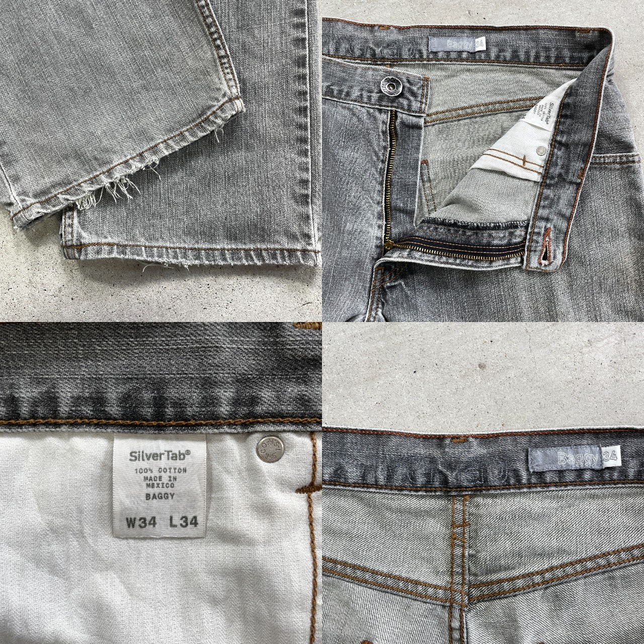 ■00年代 Levi's SILVERTAB リーバイス シルバータブ バギーデニムパンツ BAGGY メンズW34 古着 00s ヴィンテージ VINTAGE Y2K アメカジ ジーンズ ワイドデニム ルーズデニム ブラックデニム グレーデニム 先染め 墨黒 灰色【デニムパンツ】/ブラック