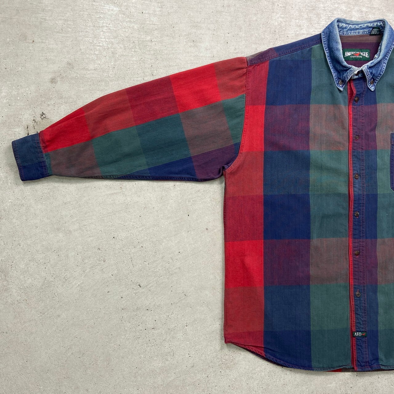 90年代 AMERICAN EAGLE アメリカンイーグル マルチチェックシャツ メンズL 古着 90s ヴィンテージ VINTAGE B.D ボタンダウンシャツ デニム襟【長袖シャツ】/マルチカラーSS30