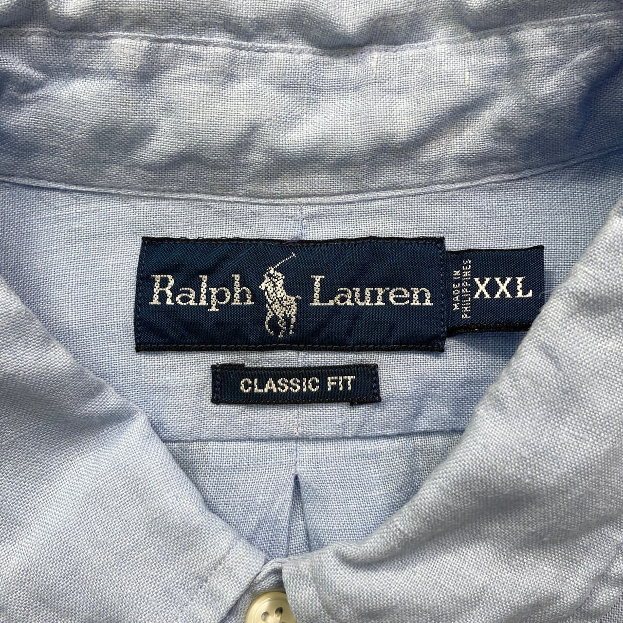 ■90年代 Ralph Lauren ラルフローレン CLASSIC FIT リネンシャツ メンズ2XL 古着 90s ヴィンテージ VINTAGE ボタンダウンシャツ サックスブルー 水色 ビッグサイズ 大きいサイズ【長袖シャツ】/ブルー