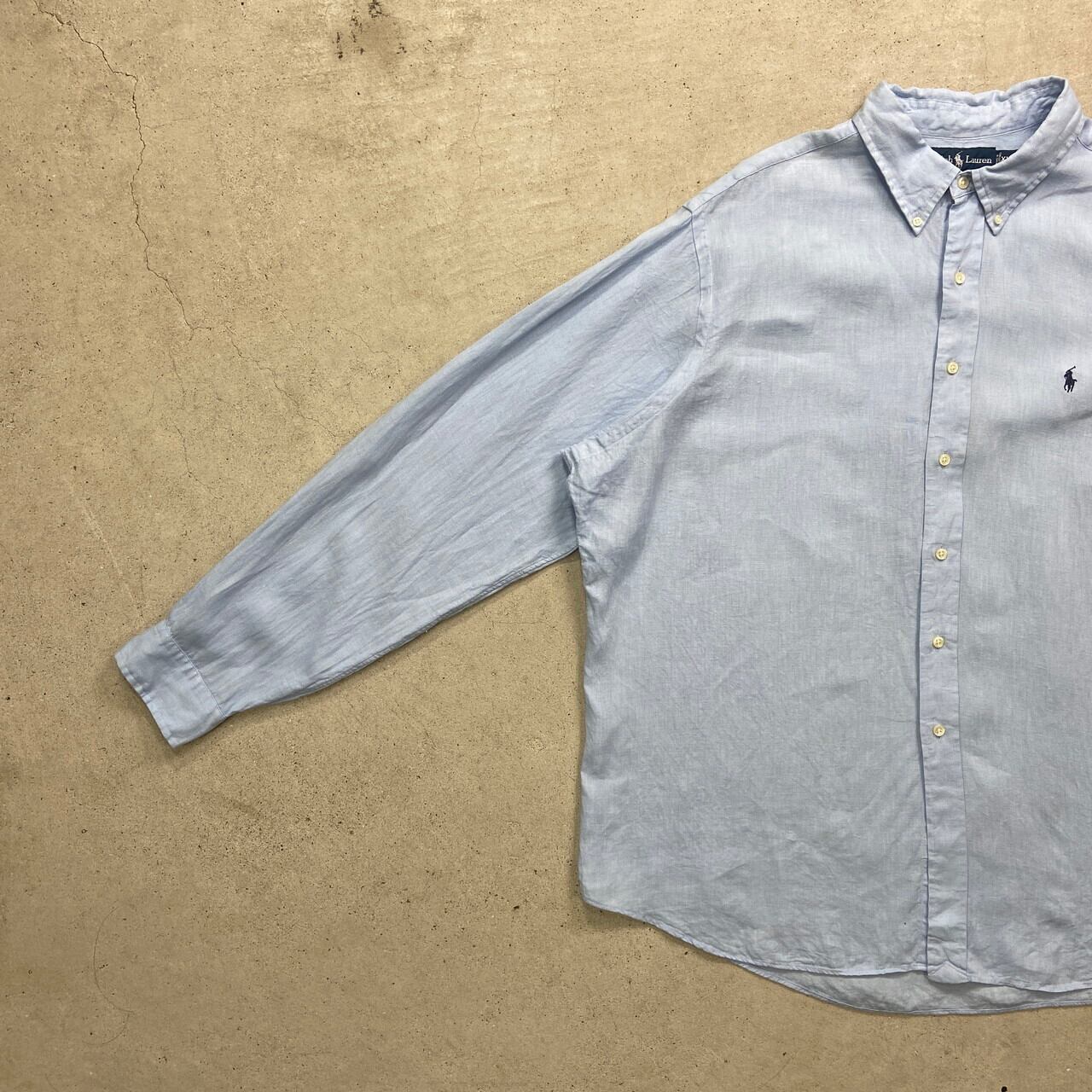 90年代 Ralph Lauren ラルフローレン CLASSIC FIT リネンシャツ メンズ2XL 古着 90s ヴィンテージ VINTAGE ボタンダウンシャツ サックスブルー 水色 ビッグサイズ 大きいサイズ【長袖シャツ】/ブルーSS30