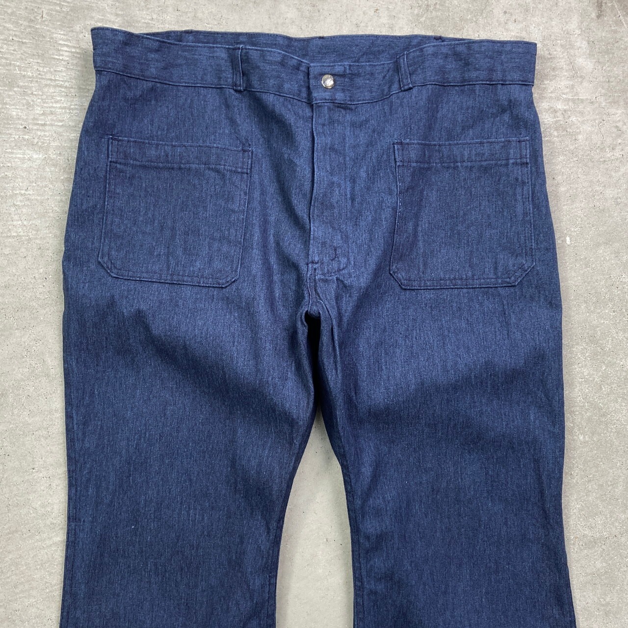 80年代 SEAFARER デニムセーラーパンツ フレアパンツ ベルボトム メンズW30 古着 80s ヴィンテージ VINTAGE 42TALONジップ U.S.NAVY ミリタリー シーファラー ビッグサイズ 大きいサイズ【デニムパンツ】/ブルー