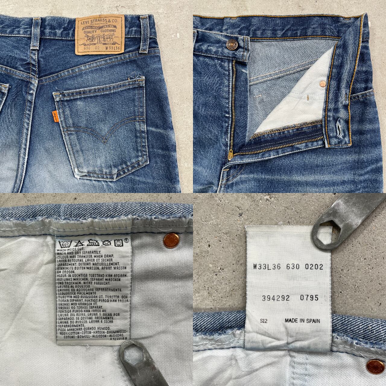 90年代 スペイン製 Levi's ユーロリーバイス 630 0202 オレンジタブ テーパード デニムパンツ メンズW34 古着 90s ヴィンテージ VINTAGE YKKジップ ヒゲ 【デニムパンツ】/ブルー