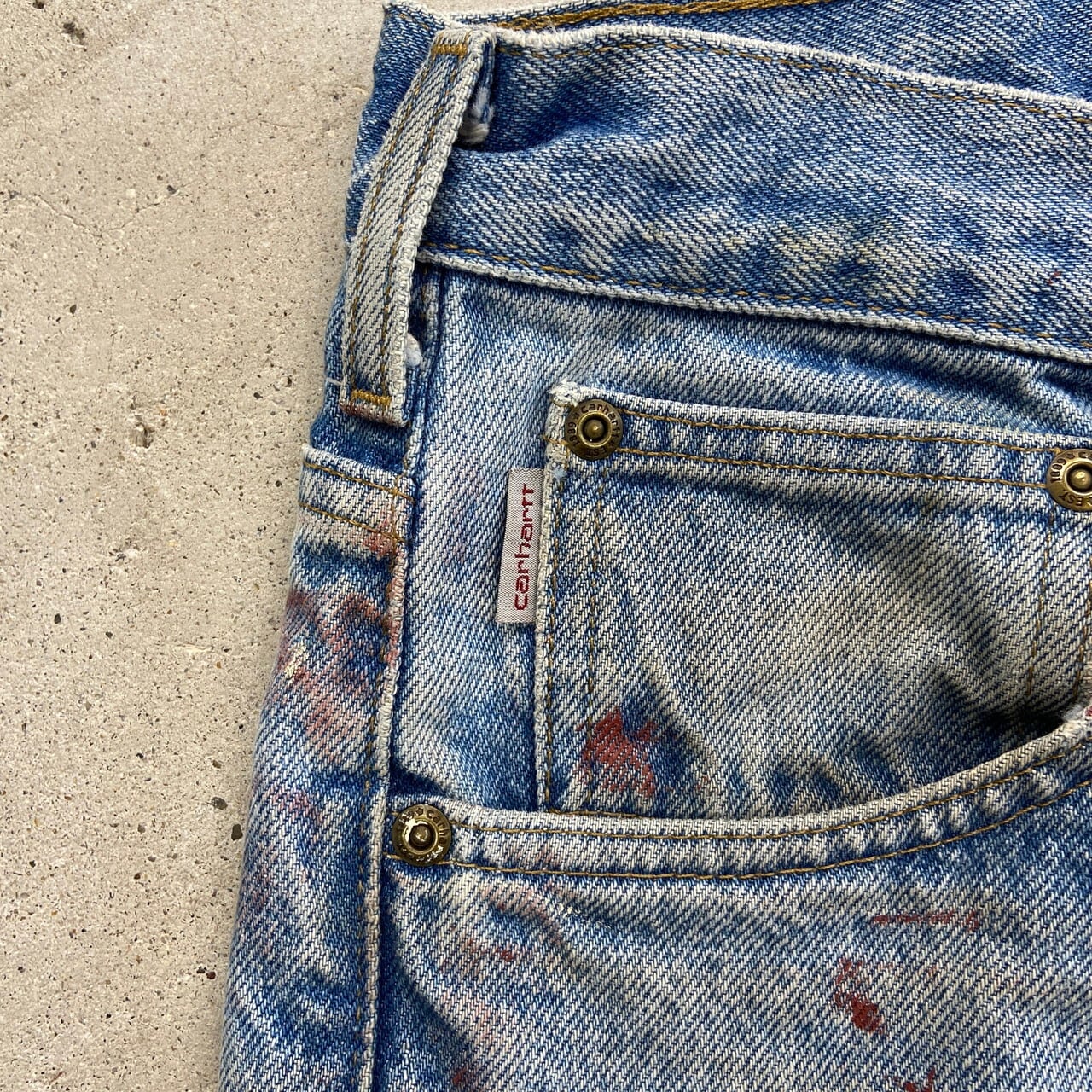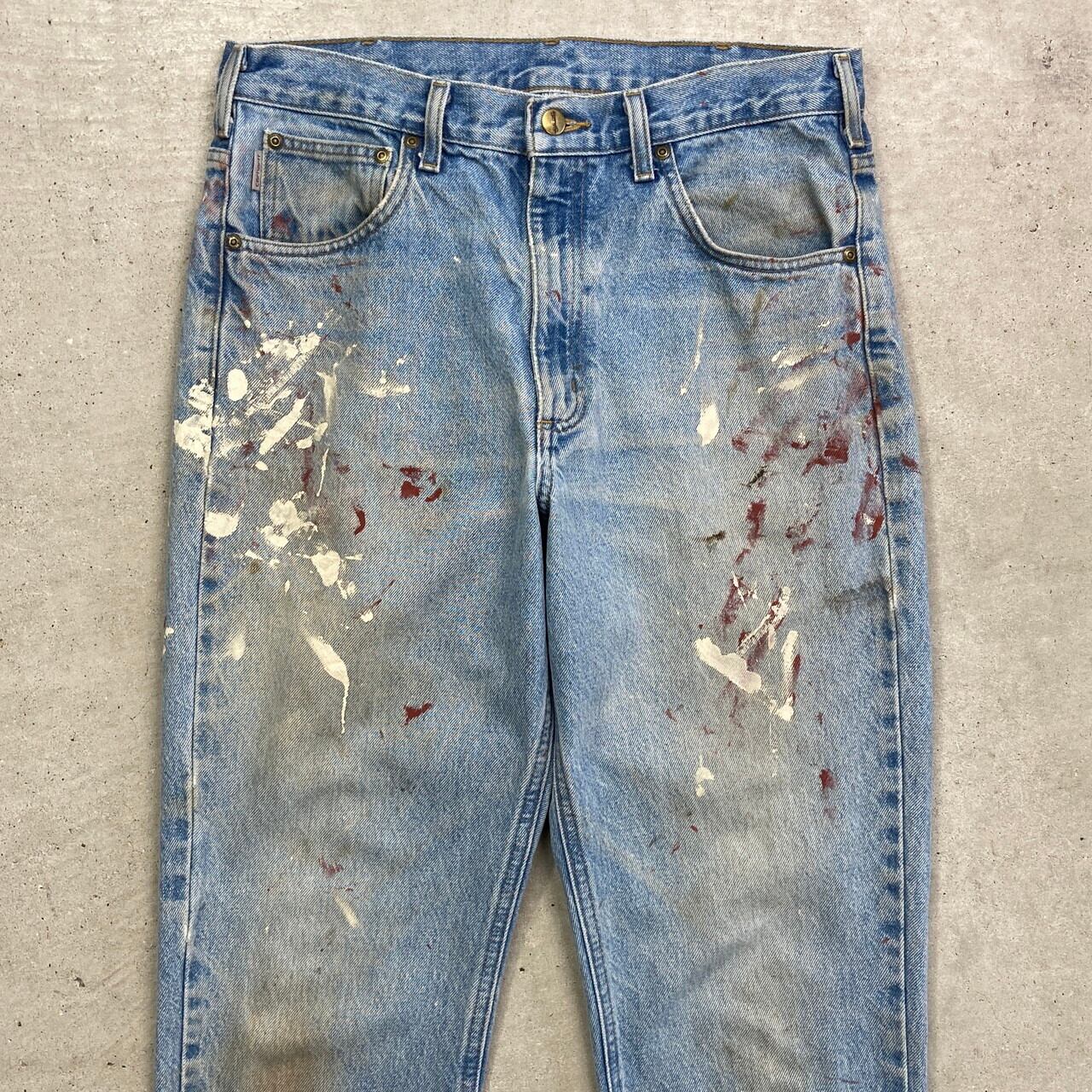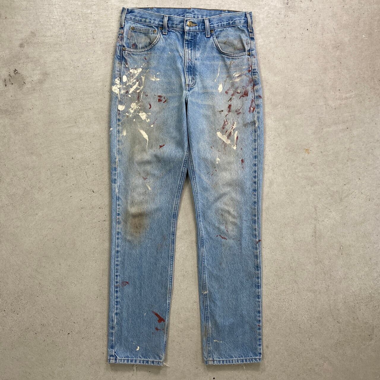 ■Carhartt カーハート テーパード デニムパンツ ペンキ メンズW33 古着 アメカジ ワークパンツ 【デニムパンツ】/ブルー