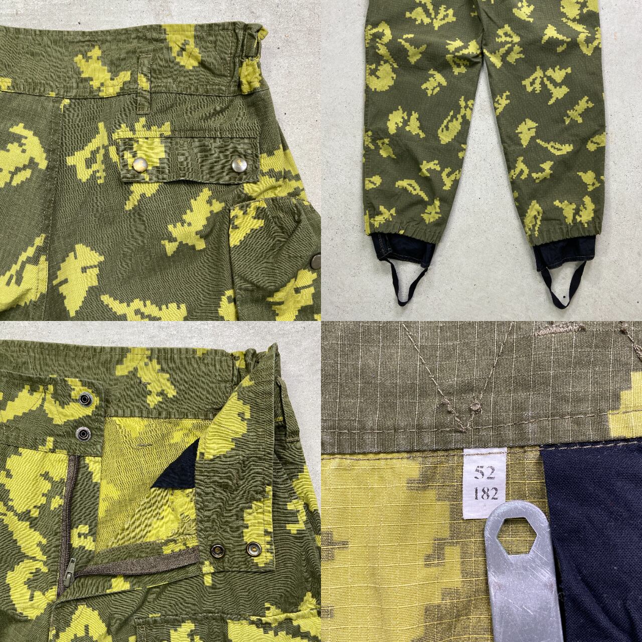 ■ロシア軍 インベーダーカモ ミリタリーカーゴパンツ リップストップ メンズW35 古着 ユーロミリタリーパンツ 迷彩 デジカモ カモフラ カーキ オリーブグリーン イエロー 緑色 黄色【ミリタリーパンツ】/マルチカラー