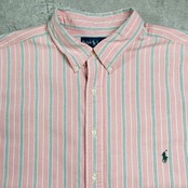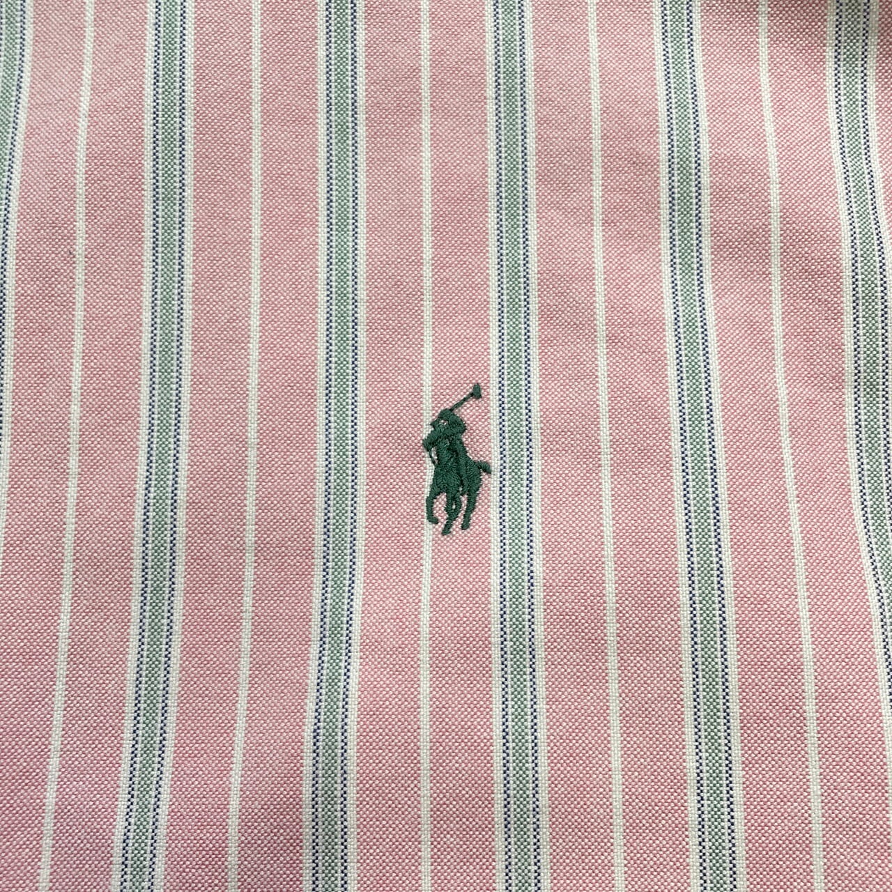 ■90年代 Ralph Lauren ラルフローレン CLASSIC FIT ストライプシャツ メンズ2XL 古着 90s アメカジ VINTAGE ヴィンテージ B.D ボタンダウンシャツ ビッグサイズ 大きいサイズ ホワイト グリーン 白 緑【長袖シャツ】/ピンク
