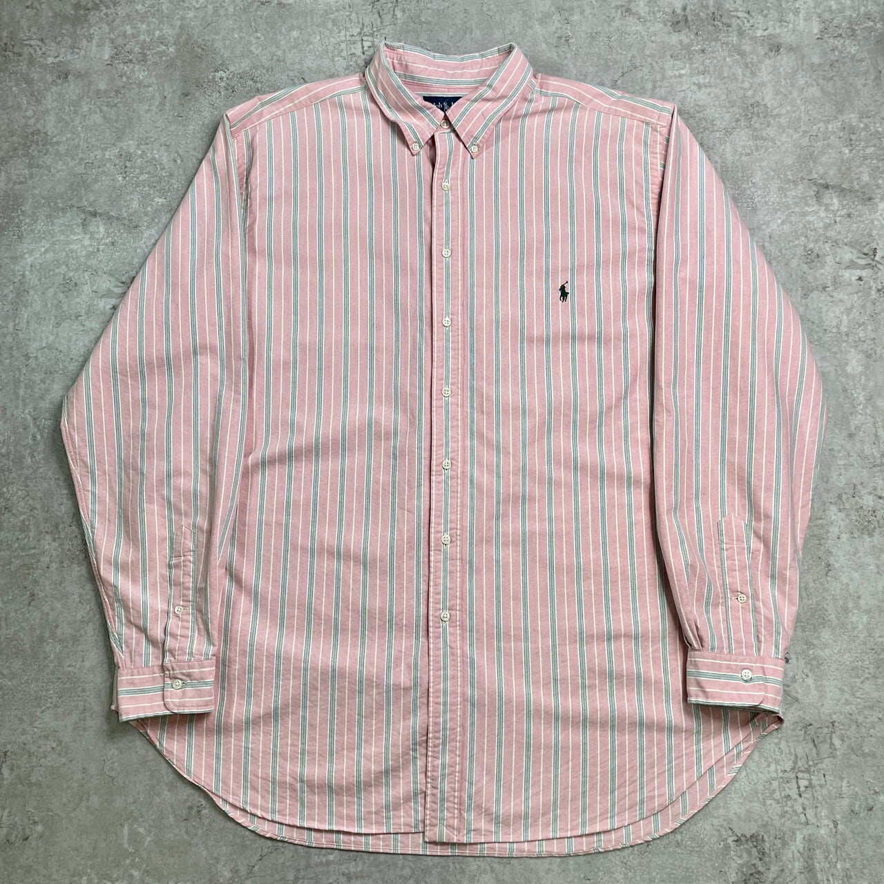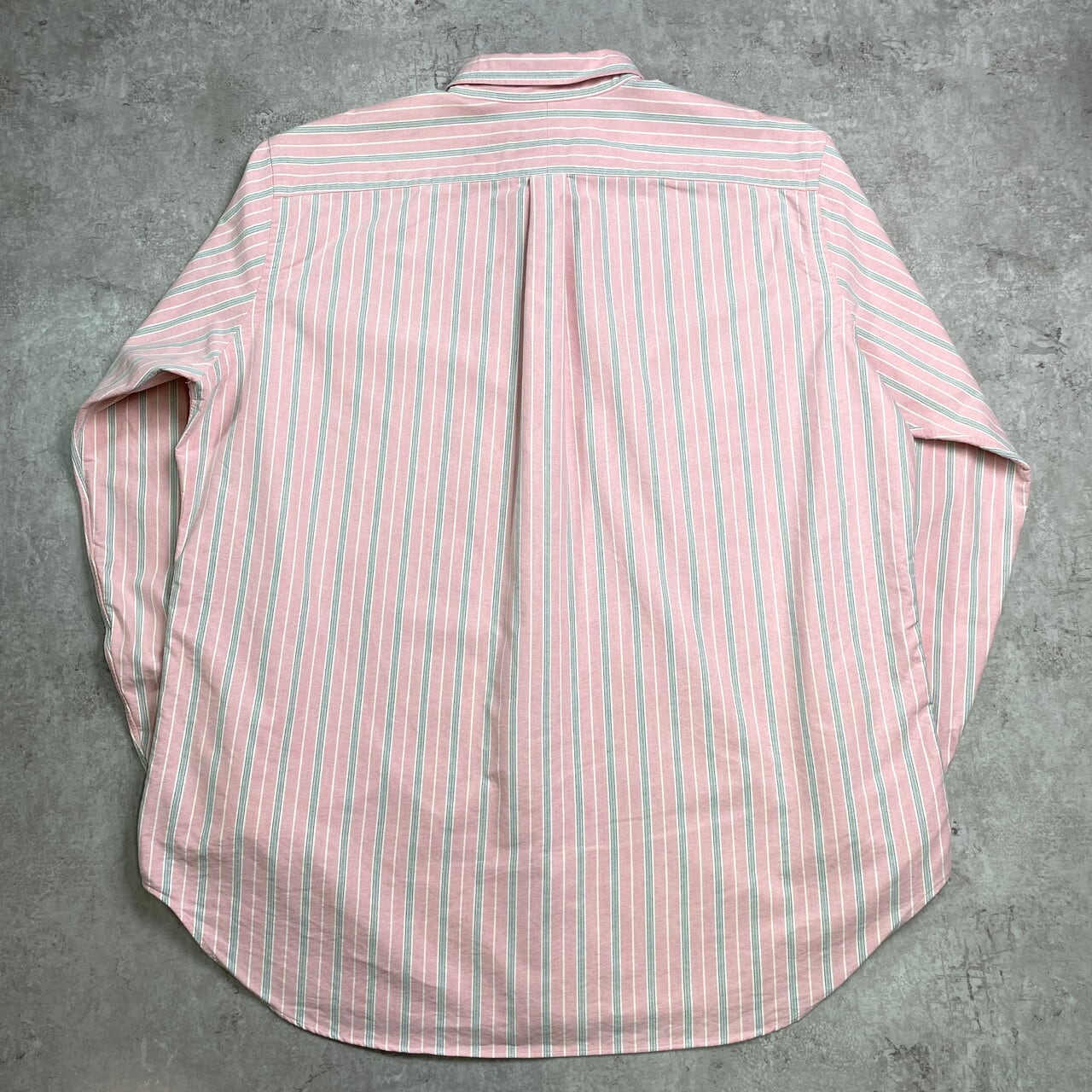 90年代 Ralph Lauren ラルフローレン CLASSIC FIT ストライプシャツ メンズ2XL 古着 90s アメカジ VINTAGE ヴィンテージ B.D ボタンダウンシャツ ビッグサイズ 大きいサイズ ホワイト グリーン 白 緑【長袖シャツ】/ピンクSS30