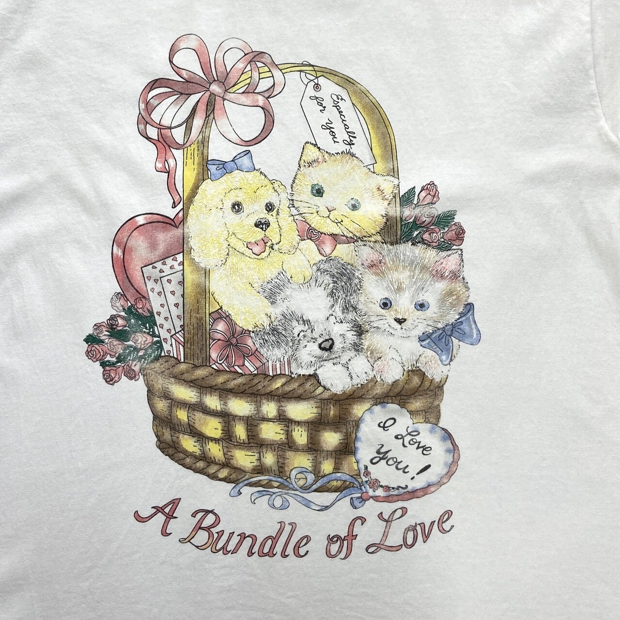 90年代 BASIC EDITIONS アニマル アートプリントTシャツ イヌ ネコ メンズL相当 レディース 古着 90s ヴィンテージ VINTAGE 動物 白 犬 猫 【Tシャツ】/ホワイト【SS50】