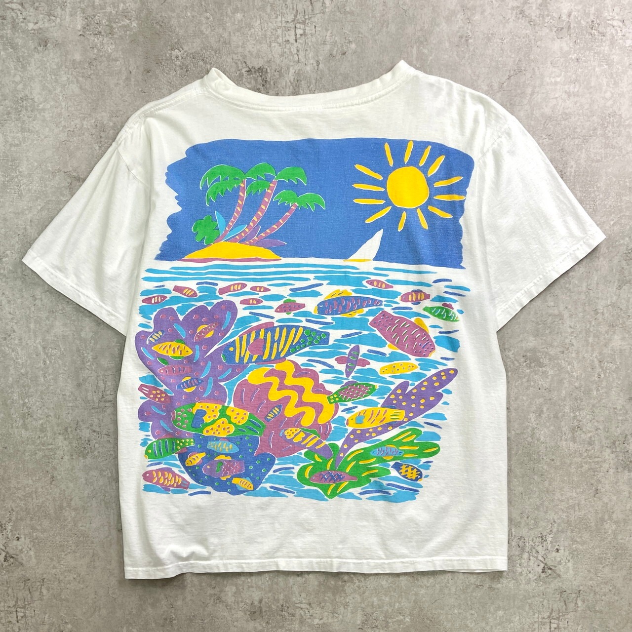 90年代 USA製 Done ART & DESIGN アートプリントTシャツ KEN DONE メンズ2XL相当 古着 90s ヴィンテージ VINTAGE 魚 アニマル 動物 ビッグサイズ 大きいサイズ 白 【Tシャツ】/ホワイト【SS50】