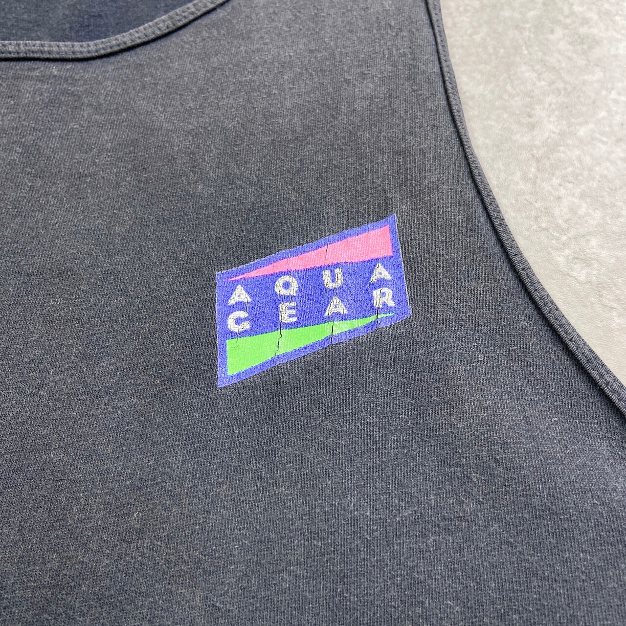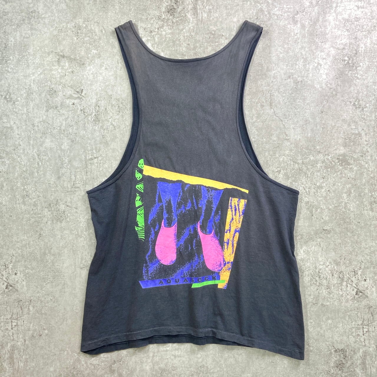 90年代 USA製 NIKE AQUA GEAR ナイキ アクアギア ロゴプリント タンクトップ メンズXL相当 古着 90s ヴィンテージ VINTAGE 裾シングルステッチ フェードブラック 墨黒【タンクトップ】/ブラック【SS50】