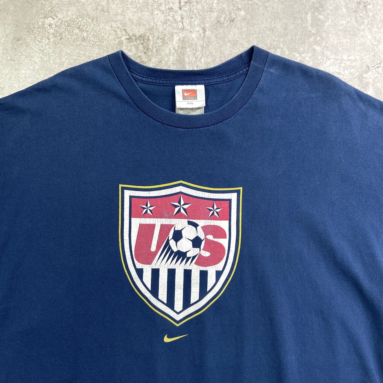 ■90年代 NIKE TEAM ナイキ サッカーアメリカ代表 ロゴプリントTシャツ メンズ2XL 古着 90s ヴィンテージ VINTAGE USA 紺色 ビッグサイズ 大きいサイズ【Tシャツ】/ネイビー