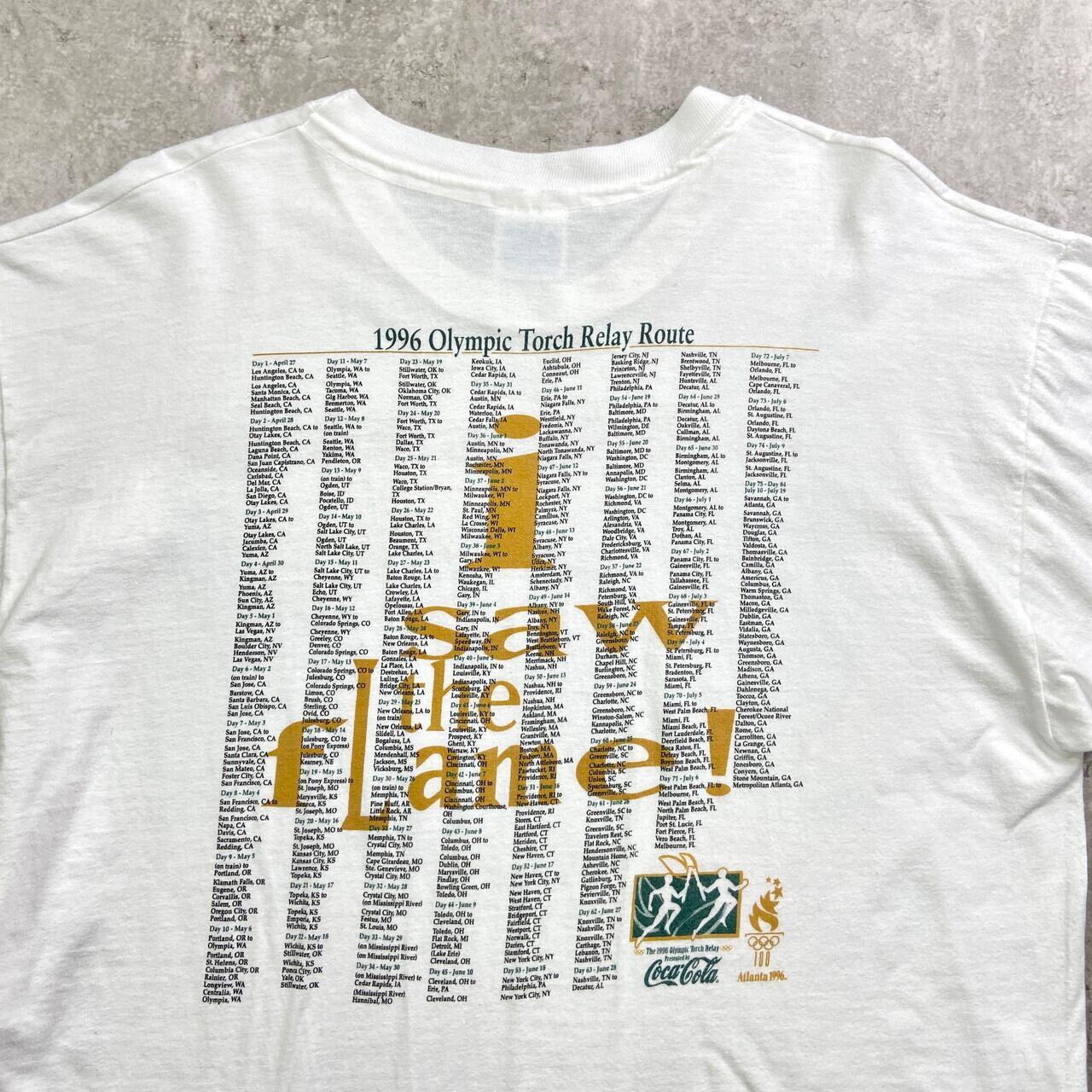 ■90年代 THE 1996 OLYMPIC TORCH RELAY Coca-Cola 企業ロゴプリントTシャツ メンズXL 古着 90s ヴィンテージ VINTAGE シングルステッチ コカ・コーラ アトランタオリンピック 聖火リレー 両面プリント 白 【Tシャツ】/ホワイト