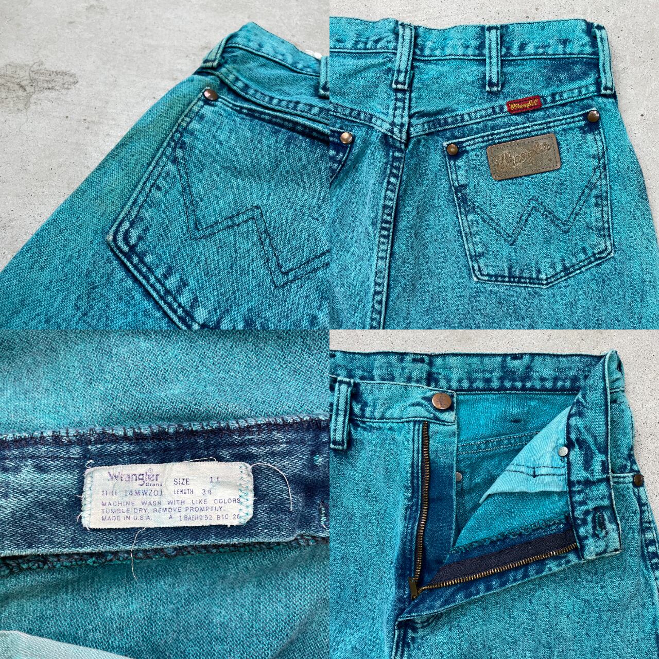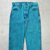■80年代 Wrangler ラングラー カラーデニムパンツ ケミカルウォッシュ 後染め レディースW29 古着 アメカジ 80s VINTAGE ヴィンテージ SCOVILLLジップ ターコイズブルー 水色 【デニムパンツ】/ブルー